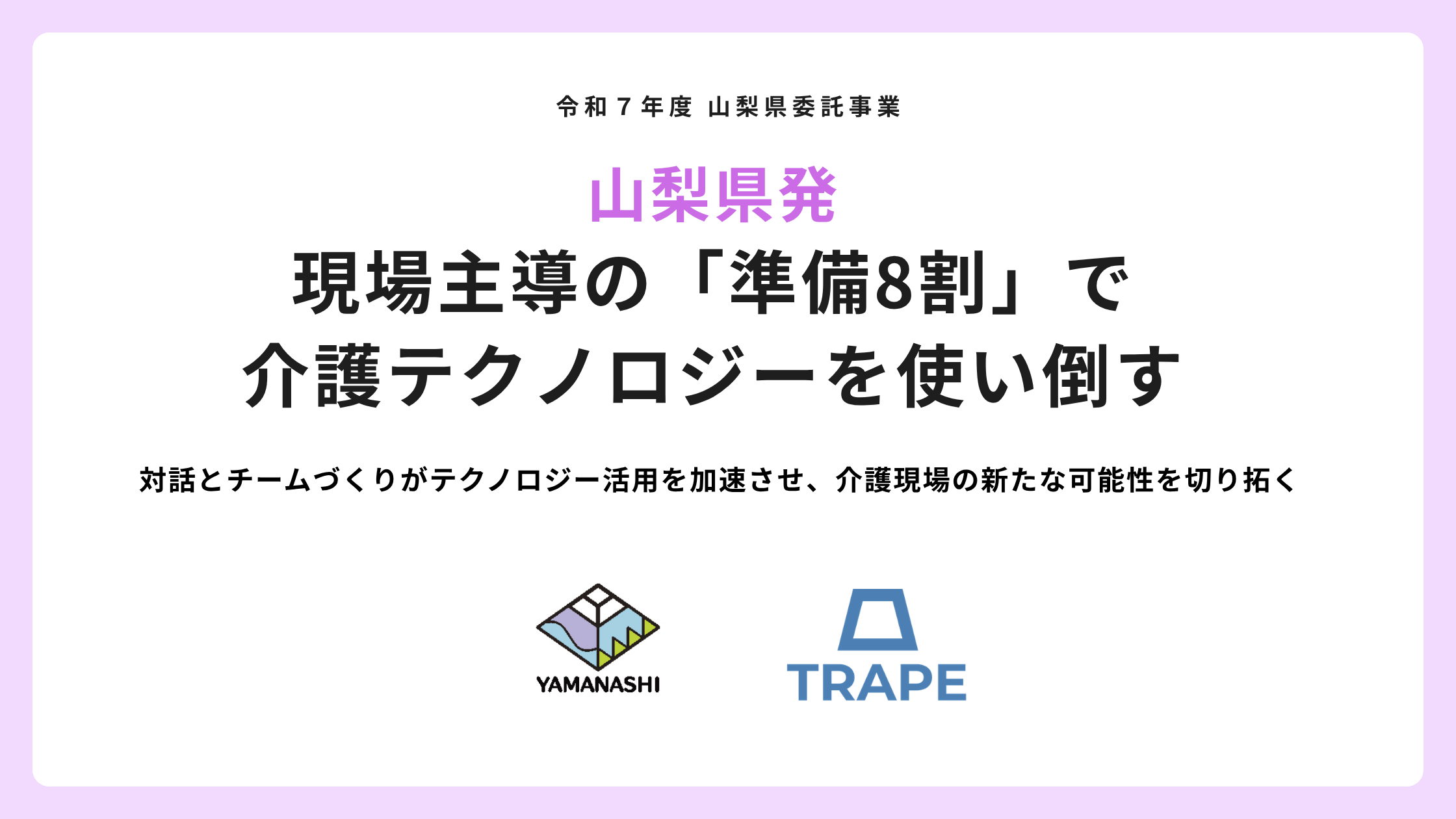 この度、TRAPEは「令和7年度 山梨県 介護生産性向上総合相談窓口事業」を受託。セミナー開催や技術助言に加え、モデル事業所への伴走支援を実施しました。
