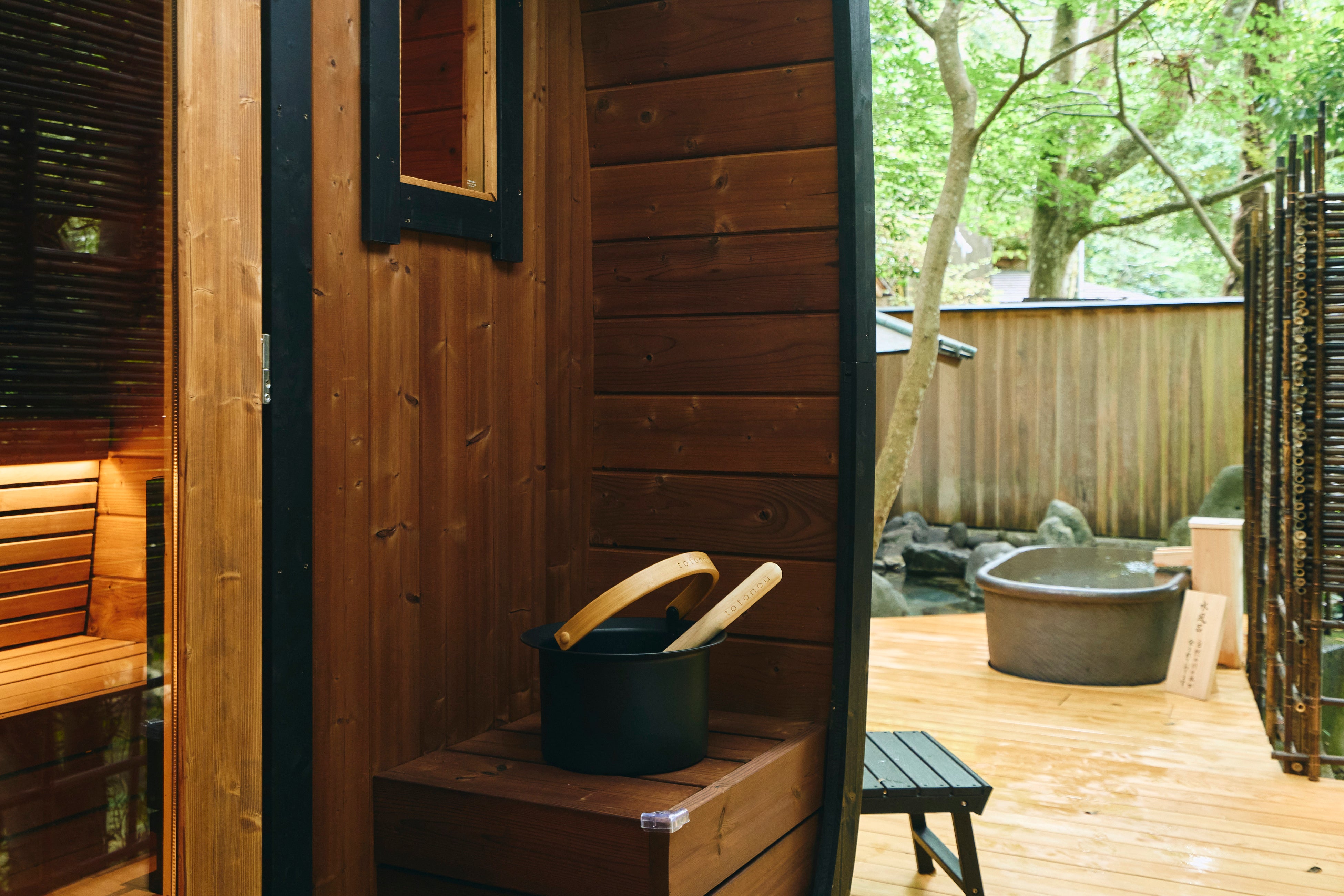 サウナは露天風呂のすぐそばに設置されており、サウナ、水風呂、ベンチ、露天風呂が一直線に並ぶ動線も魅力のひとつです。自然に抱かれた特別な空間での『温冷交代浴』で、心ゆくまでととのうことができます。