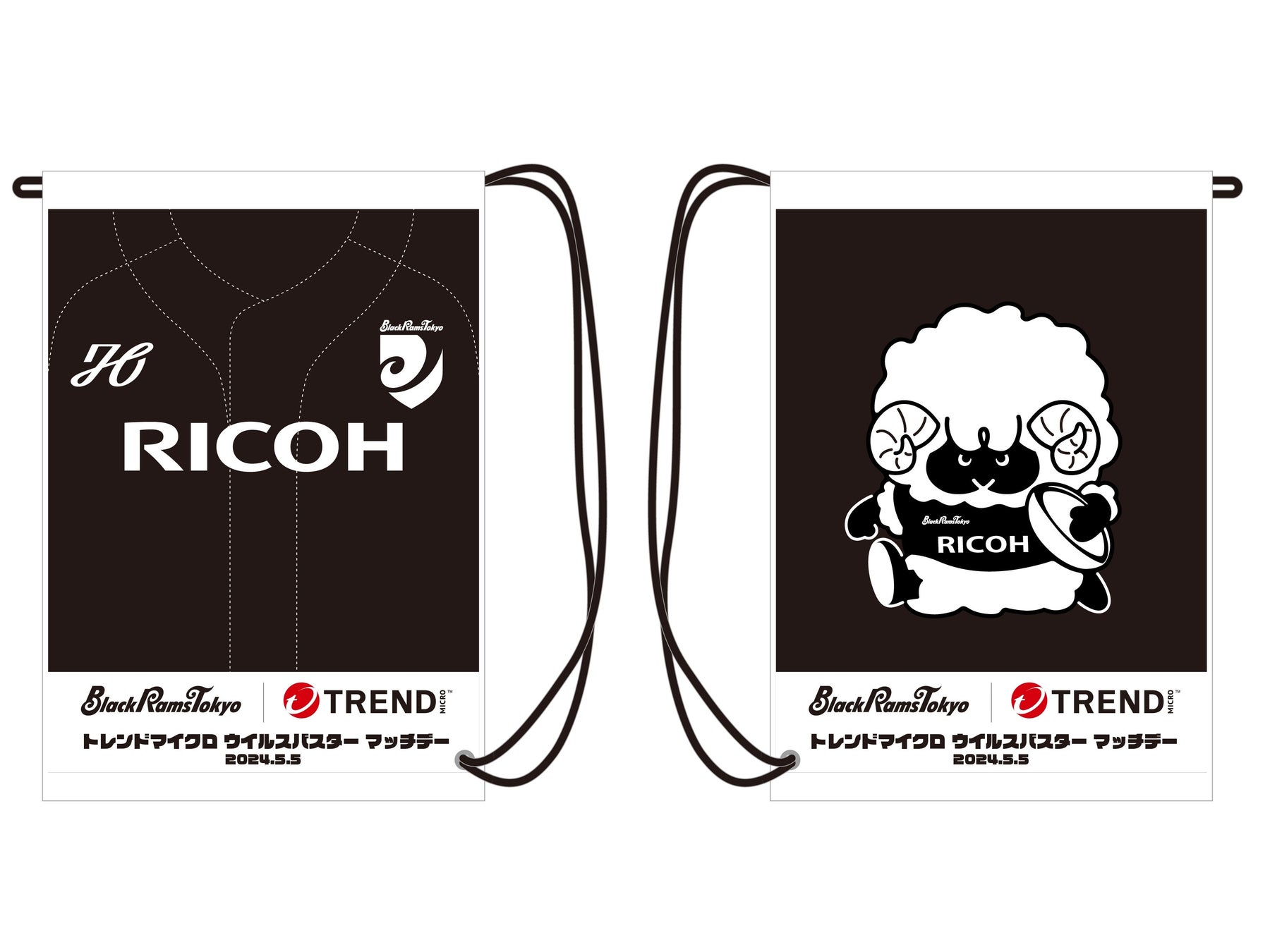 ・来場者にトレンドマイクロ×リコーブラックラムズ東京 オリジナル肩掛けビニールバックの配布(12,000個)