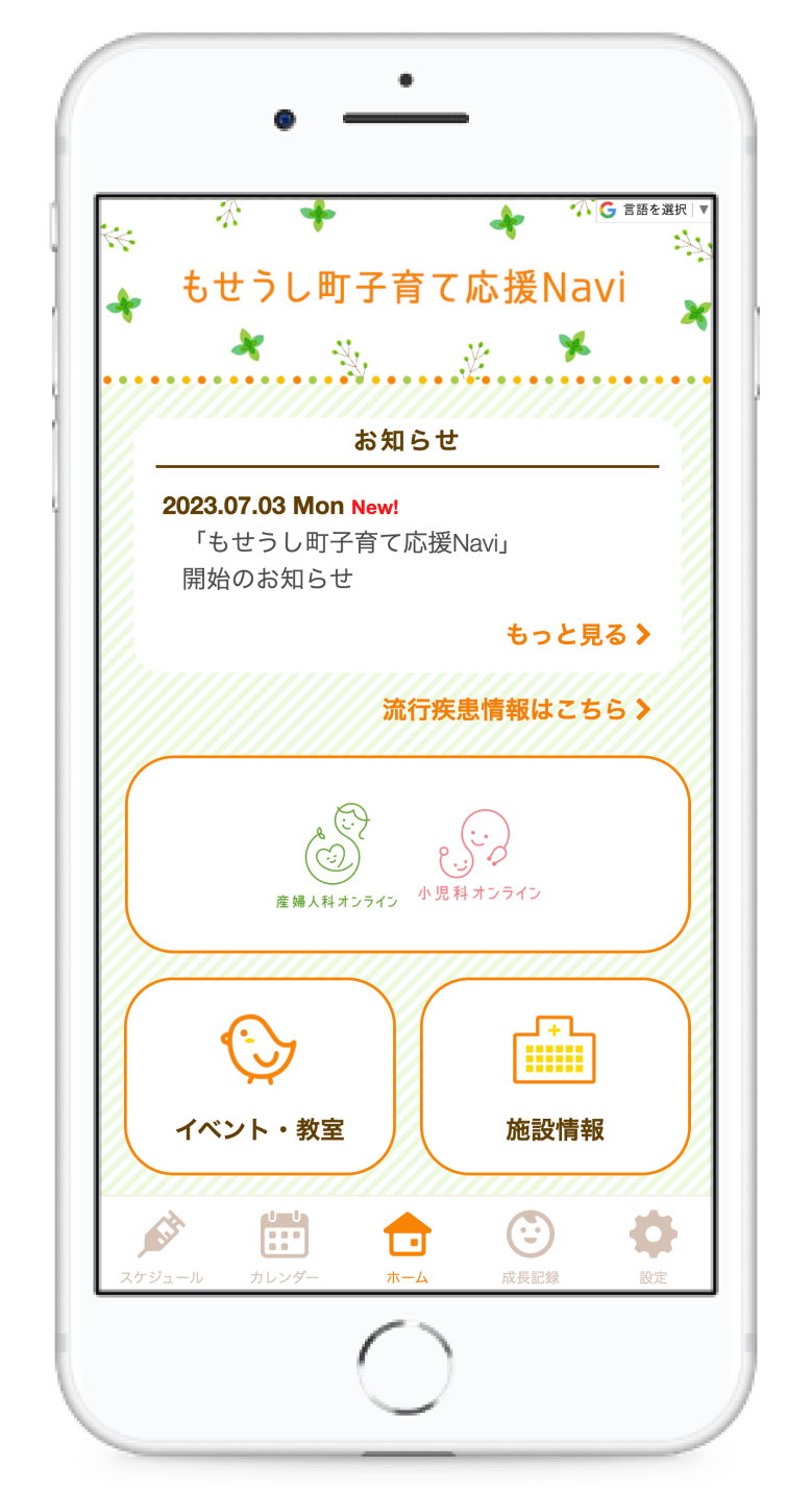 この度、健診・予防接種等のタイムリーな情報提供と、個人管理機能を有する町の情報発信アプリ「もせうし町子育て応援Navi」が導入されることになりました。子育て世代が必要な情報や適切な相談につながることができるよう、「もせうし町子育て応援Navi」をどうぞご活用ください。