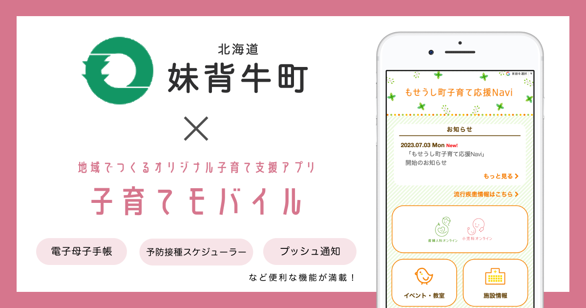 ミラボ、北海道 妹背牛町で子育て支援アプリ「もせうし町子育て応援Navi」提供開始