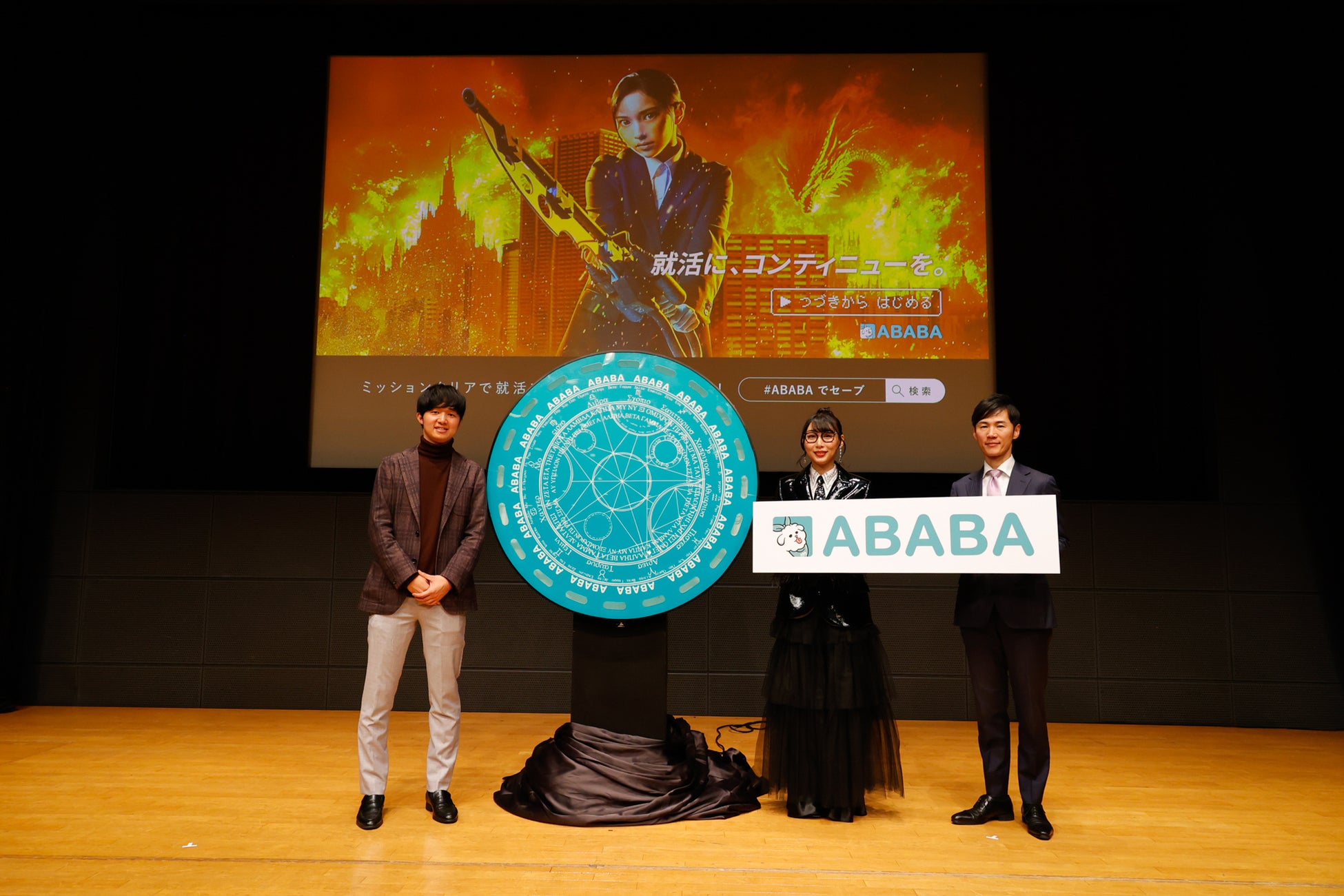 当イベントには石丸伸二さん、ハシヤスメ・アツコさんがスペシャルゲストとして登壇。キャンペーンの象徴となる「ABABA特製セーブポイント“不滅の標(ふめつのしるべ)”」の除幕式を行うなど、就活という人生のターニングポイントを支援するABABAの新たなメッセージや、コンセプトの世界観とともに就活を効率よく前に進める「ABABAでセーブ」就活支援キャンペーンを発表しました。