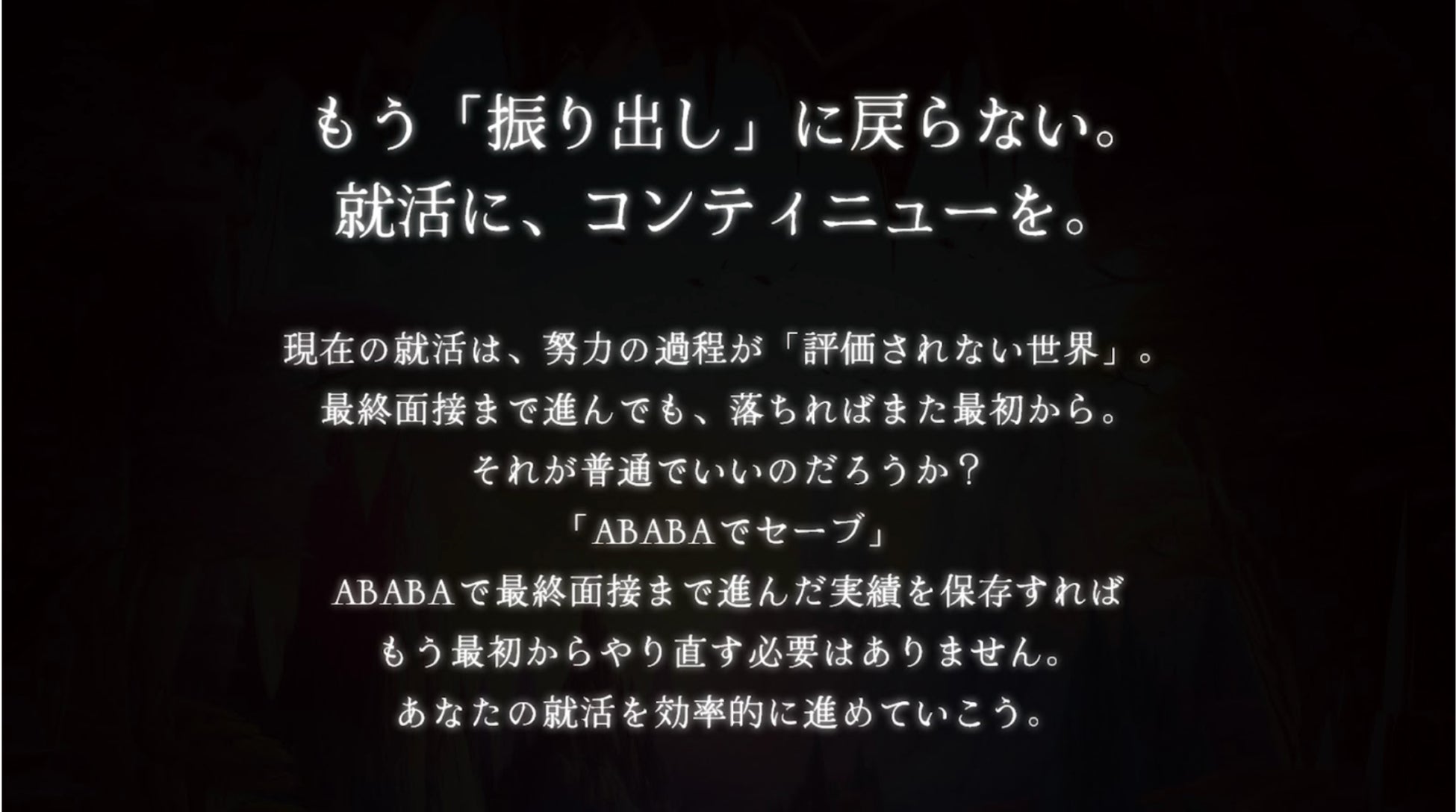 就活に、コンティニューを。“つづきからはじめるABABA”