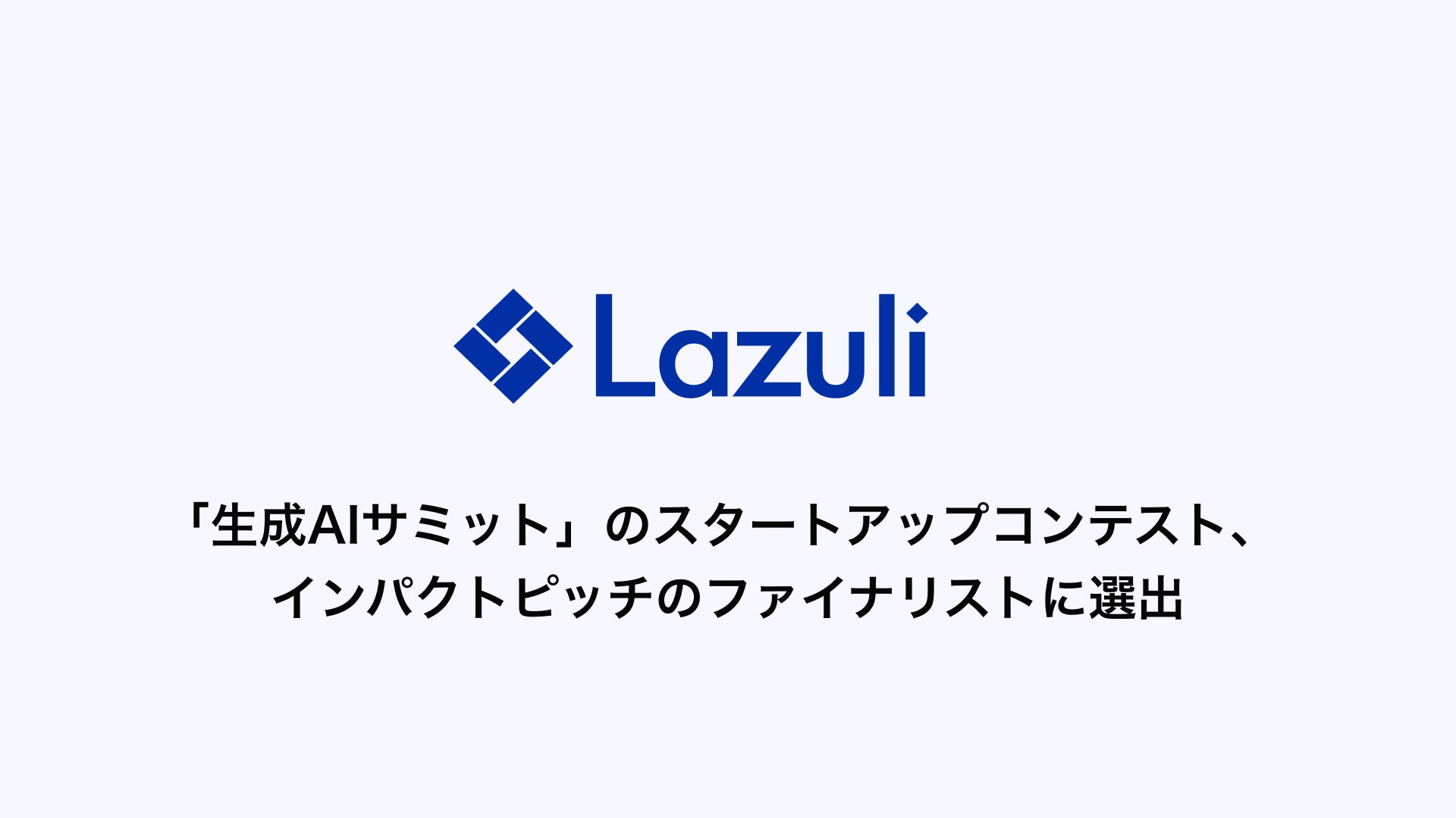 Lazuli株式会社(本社:東京都港区、代表取締役:萩原 静厳、以下Lazuli)は、日本経済新聞社が主催する生成AI(人工知能)をテーマにした総合イベント「生成AIサミット(GenAI/SUM=ジェンエーアイサム) 2024」にて開催されるスタートアップコンテストのインパクトピッチに応募し、ファイナリストに選出されました。