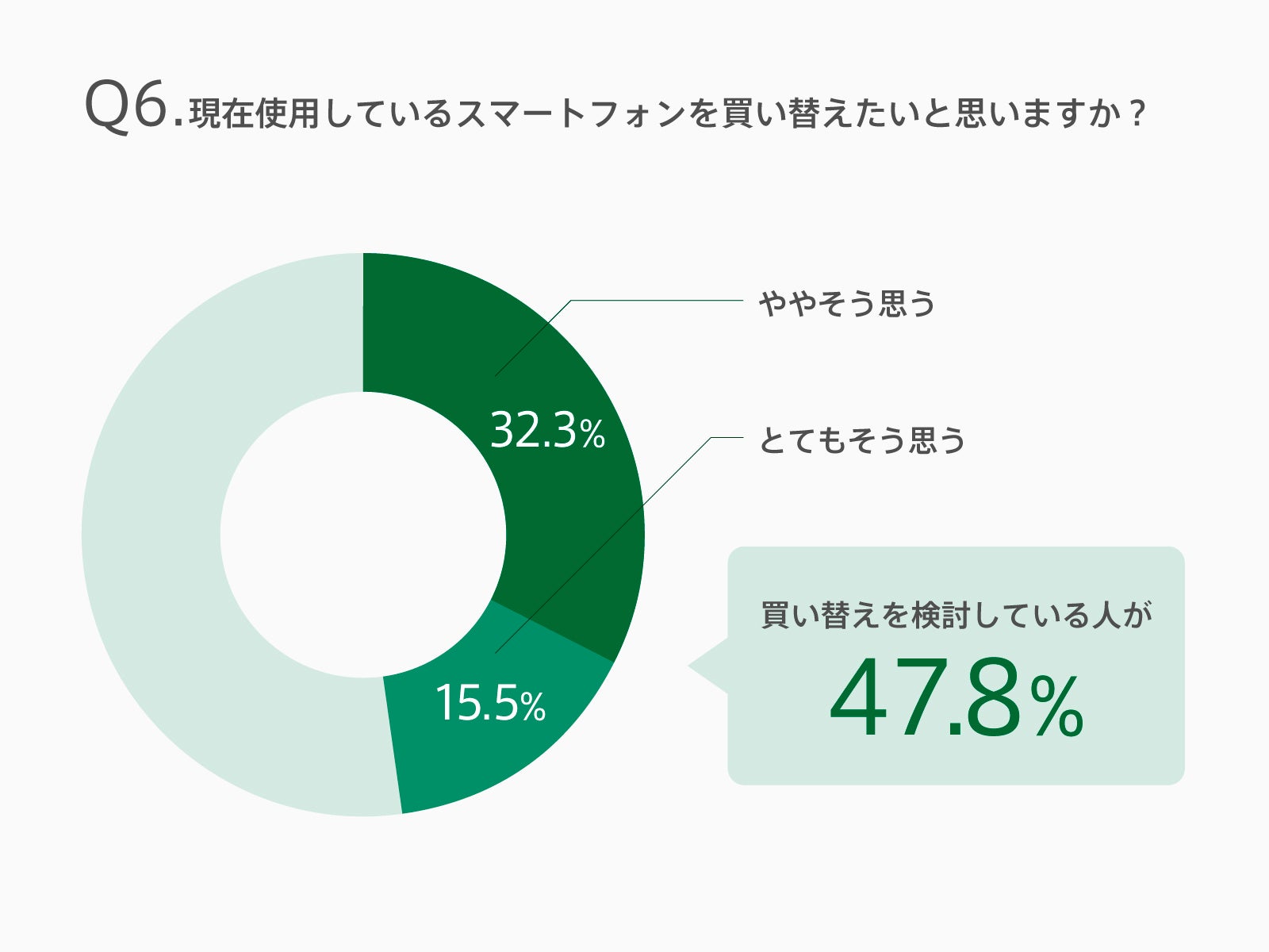 現在使用しているスマートフォンに関する調査では、買い替えたいと思う人が約半数(47.8%)という結果に。