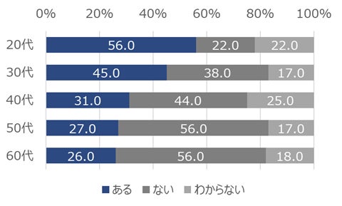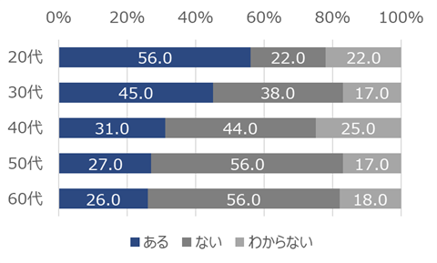 なお、今年の夏に宿泊を伴う帰省や旅行の予定があるか聞くと、37.0%の人は「予定がある」と回答しました【図3】。年代別で見ると若年層ほど帰省や旅行を予定している割合が高く、20代・30代では約5割になりました【図4】。