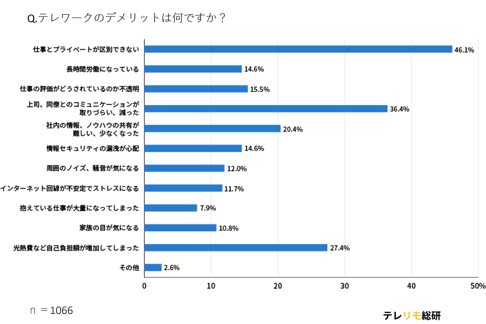 テレワークのデメリットについての調査結果から考えます。