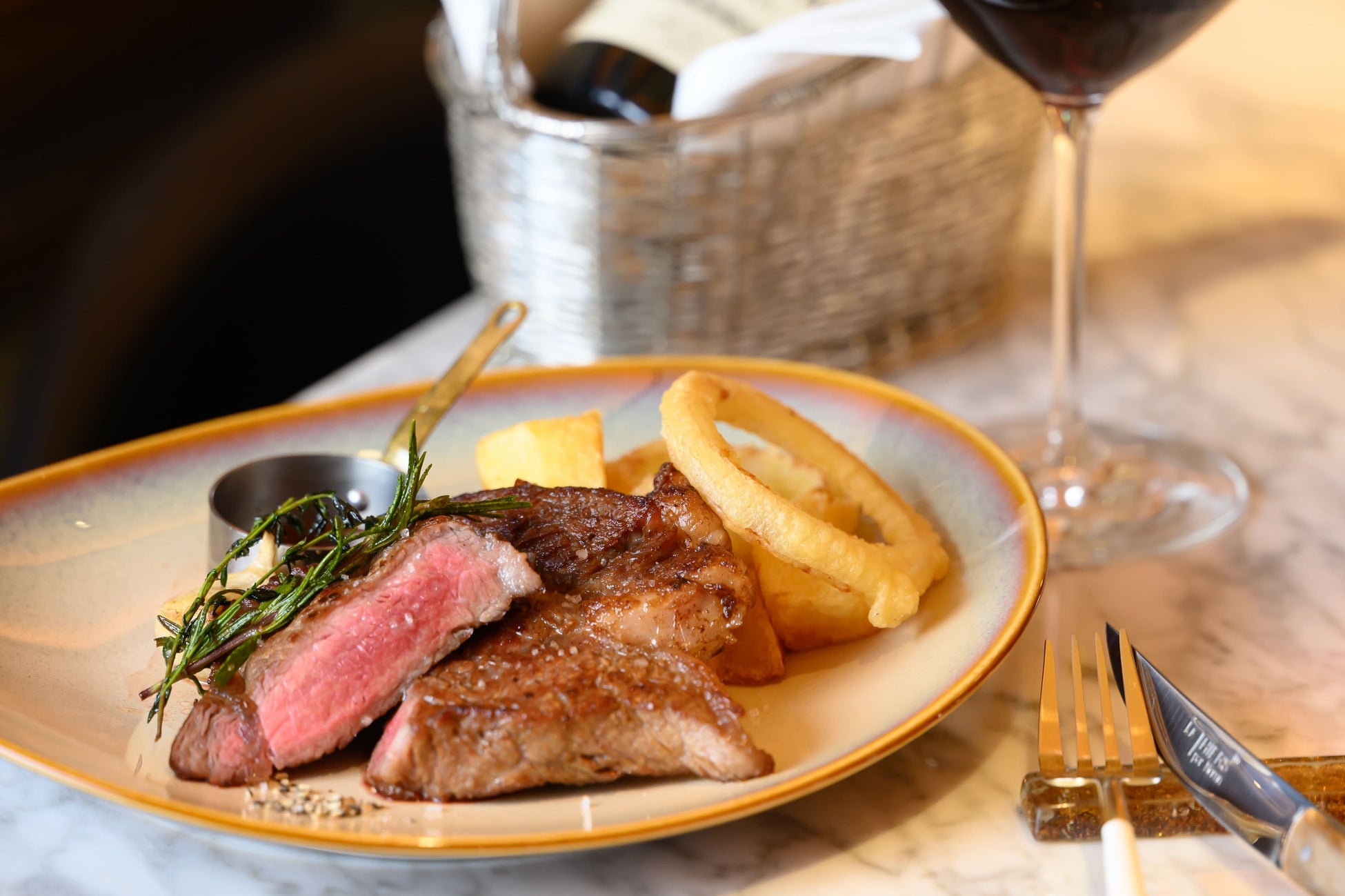 中でも看板メニューは近江牛サーロインのステックフリット。松坂牛、神戸牛と並び、三大和牛のひとつである近江牛は、料理人たちの間で愛される人気黒毛和牛ブランドの一つ。甘く優雅な脂身と柔らかくきめ細かい繊細な肉質が特徴で、口に入れた瞬間にとろけてしまうほど美味しいお肉をステーキでご堪能ください。