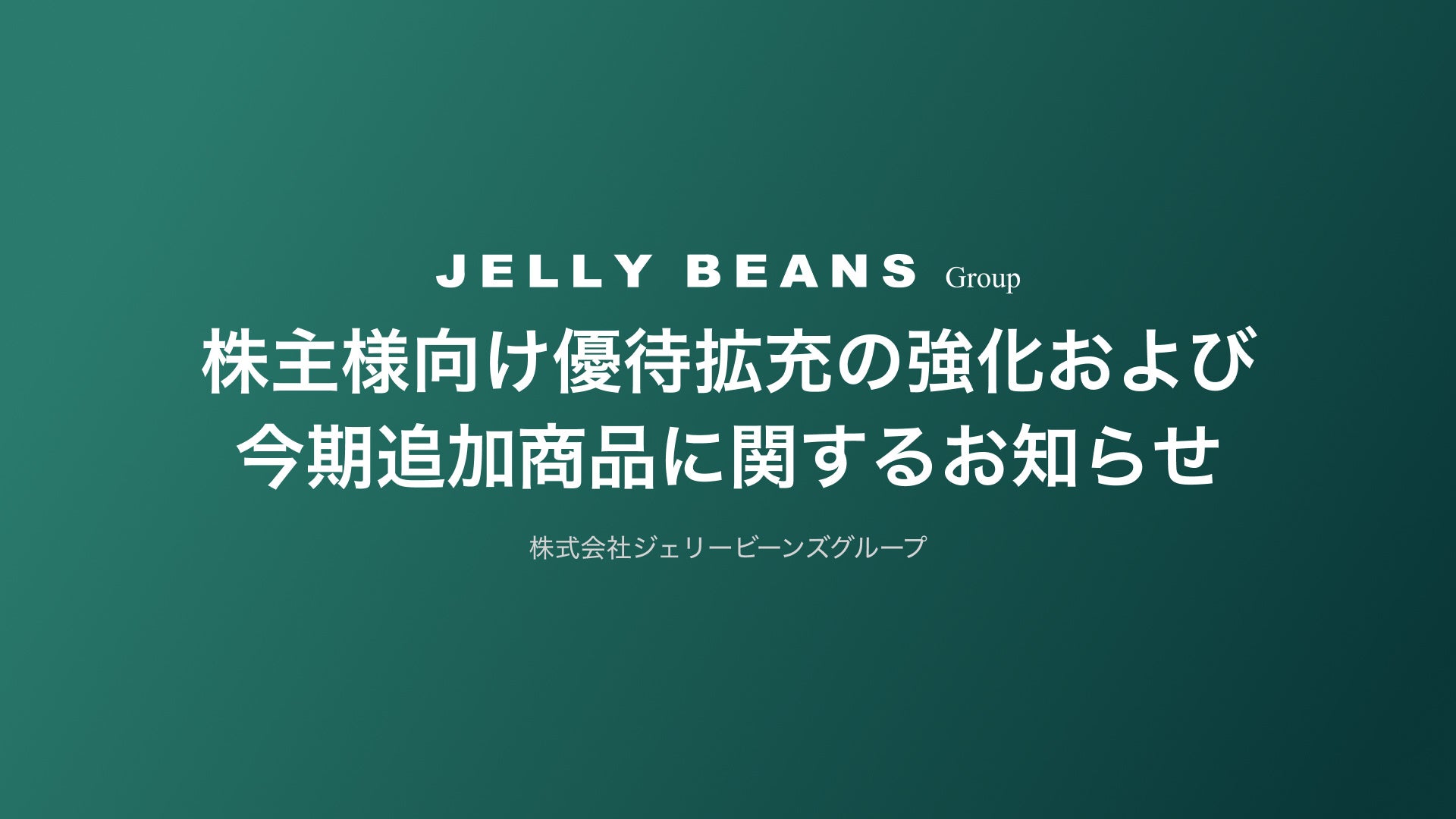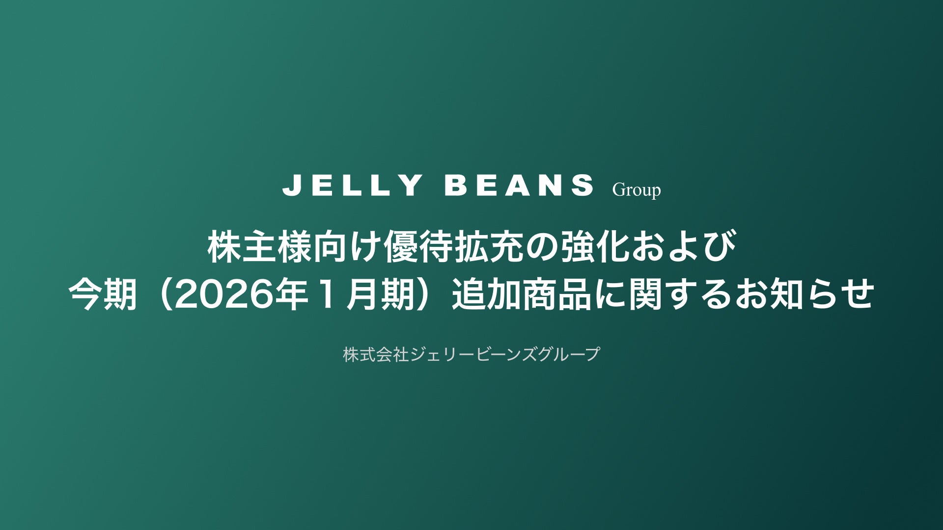 株式会社ジェリービーンズグループでは、昨期(2025年1月期)より導入した株主優待制度(ダブル優待・中長期保有特典・株主様向け常設サイト)につき、多くの株主様から高いご支持をいただいており、制度開始以降、利用頻度の向上や継続保有期間の長期化など、株主エンゲージメントの深化という形で着実な成果が表れております。