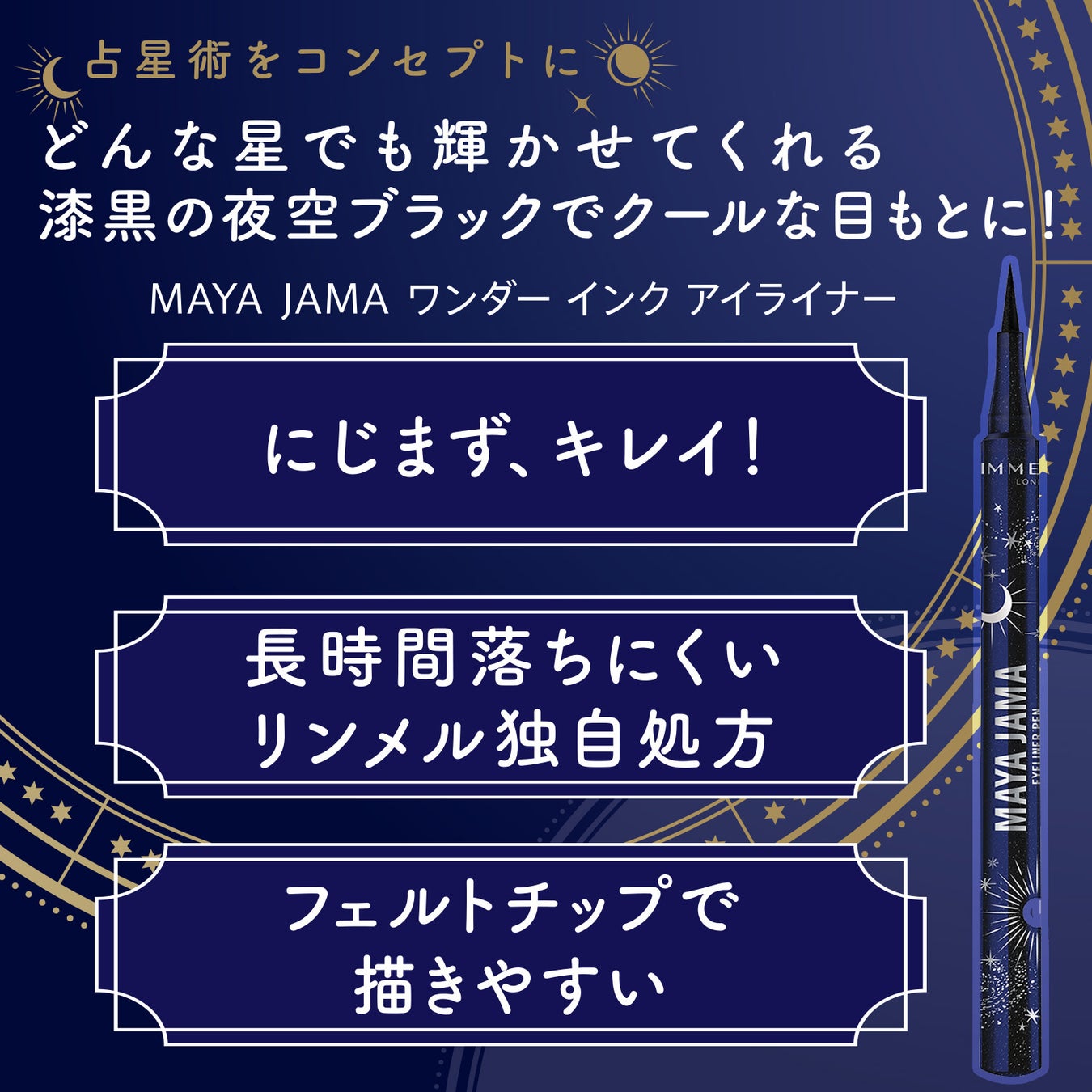 リンメル独自の落ちにくい処方で、夜空ブラックのクールな目もとを長時間演出。どんな星でも輝く夜空ブラックカラーでクールな目もとに!