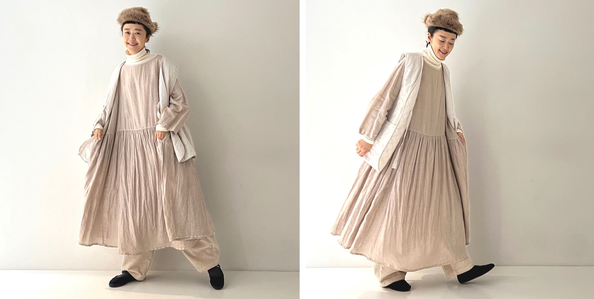 スローメイドな着心地の良さで、心のウェルネスにコミットできるネストローブの快適ワンピース。