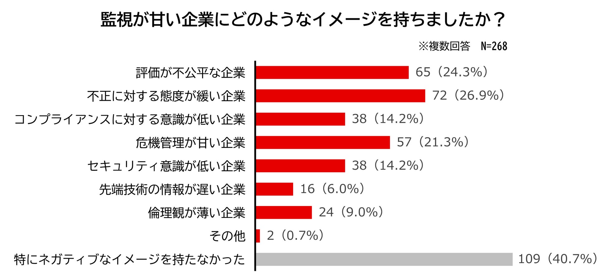 全体の62.3%が監視の甘い企業に対して何らかの不信感を抱いたことが明らかになりました。