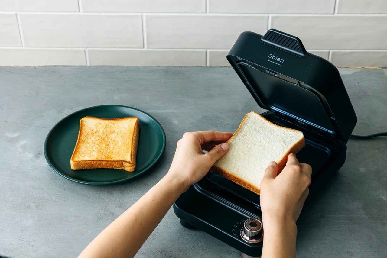 「abien BREAD GRILL」は、“食パンをおいしくトーストすることだけ”を考えて開発を進めました。密閉された庫内には、『サーキットヒーター®️』※を内蔵したプレートを上下に配置しています。このプレートで食パンを挟み込み、両面を同時にグリルするため、外側はカリッと焼き上げられる一方で、水分や香りは食パン内部に保たれます。これにより、食パンが本来持つ素材の香りや味わいをそのままお楽しみいただけます。また、食パン両面をプレートに密着させつつ、食パンのやわらかさや厚みをつぶしてしまうことがないように、プレートと本体の間には独自のプレス構造を採用しています。