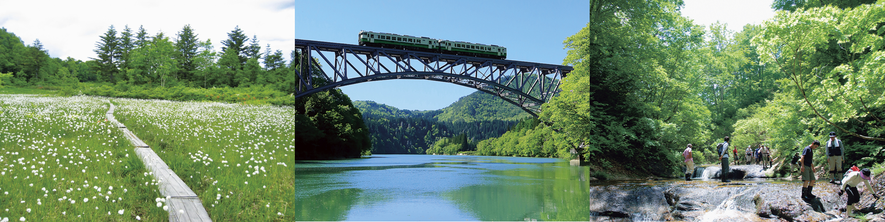 ツアー内容は、出発日により異なる3つのコースをご用意。初夏に咲くワタスゲやニッコウキスゲが生育する駒止湿原や、ブナ林のなか沢歩きを楽しめる只見町の恵みの森を訪れる「南会津ハイキング満喫コース」、標高1000mの森の中でのジップラインや郷土玩具赤べこの絵付けなど親子で一緒に体験型コンテンツが楽しめる「家族でお出かけ!夏休み満喫コース」、会津特産の夏野菜の収穫と郷土料理づくりが体験できる「南会津 旬な野菜を味わうコース」と、初夏から夏休みにかけて体験できる会津の豊かな自然とアクティビティを楽しんでいただける内容となっています。