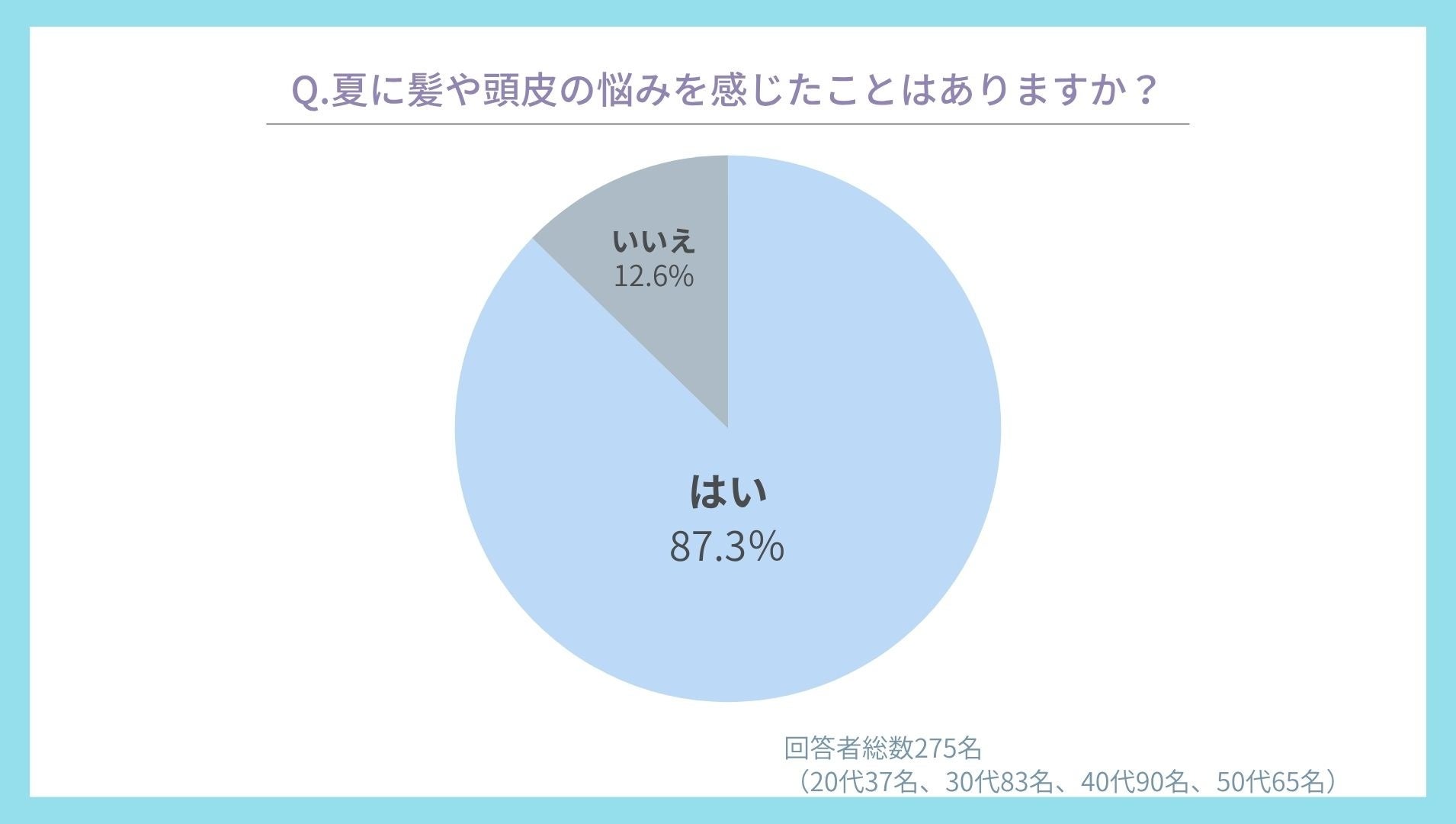 275名中240名が「はい」と回答。実に約87%が夏ならではの髪の変化に悩みを感じていることがわかりました。