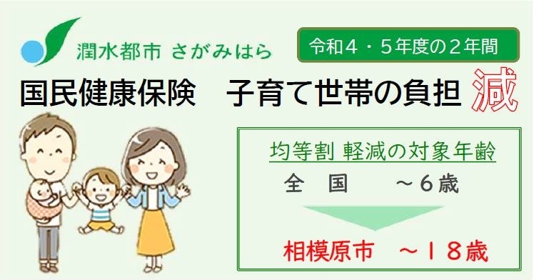 相模原市では、この制度の導入にあわせ、子育て世帯の負担軽減を目的に市独自の取組として、令和4年度と5年度の2年間において均等割軽減の対象年齢を18歳※まで拡大しています。