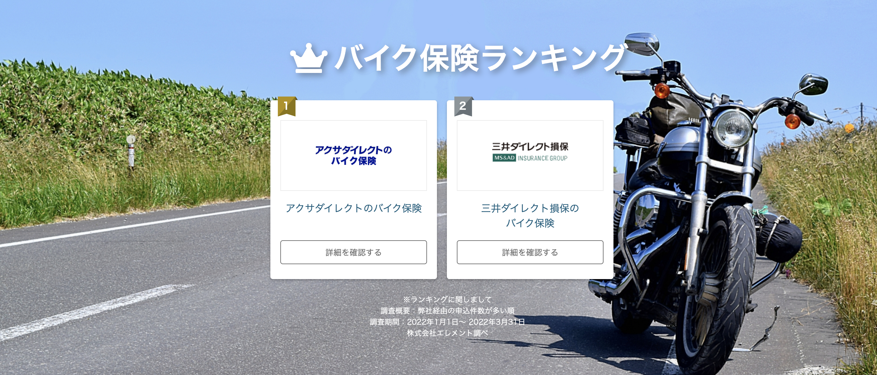 【バイク保険 人気ランキング】2022年1月〜3月の四半期版!