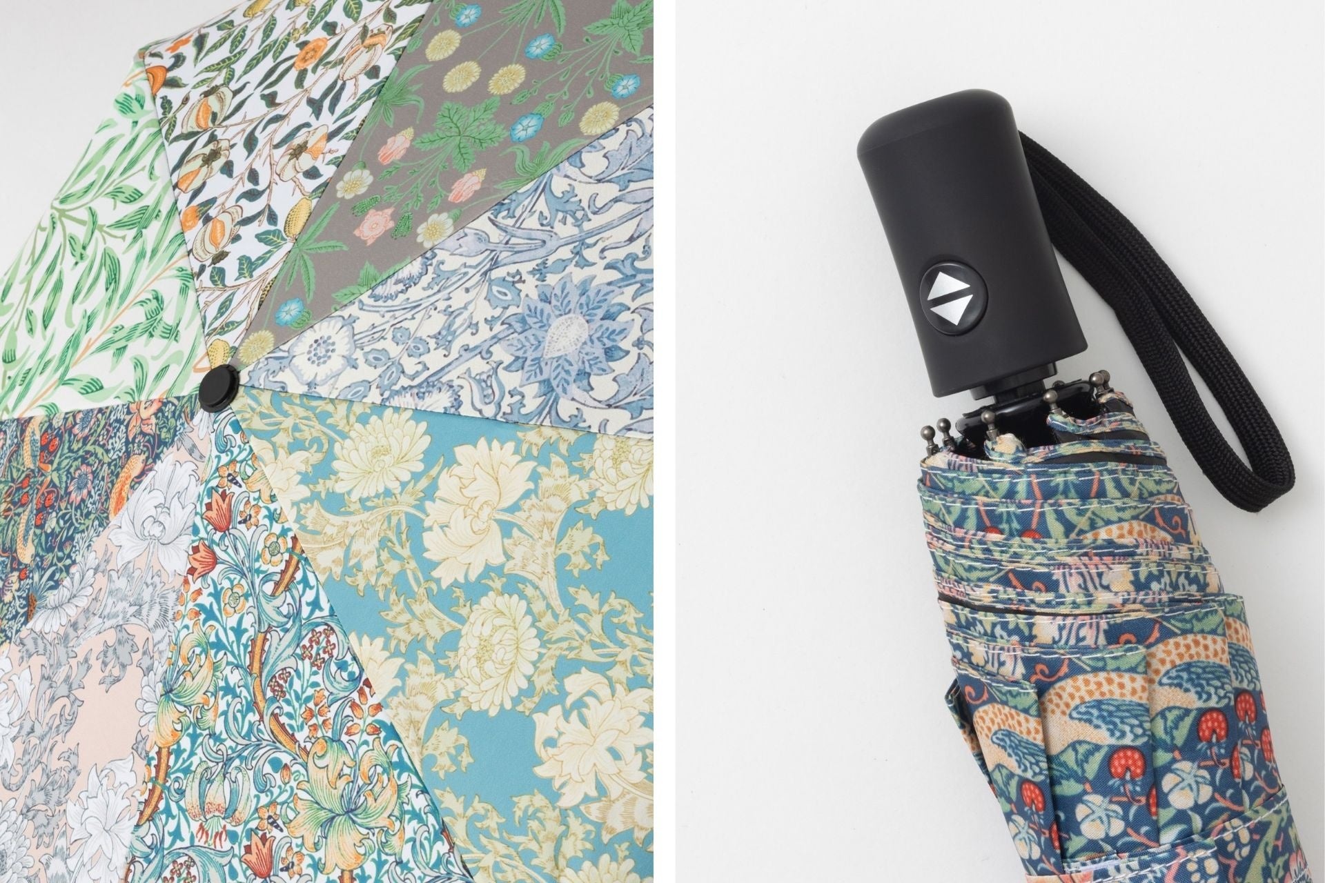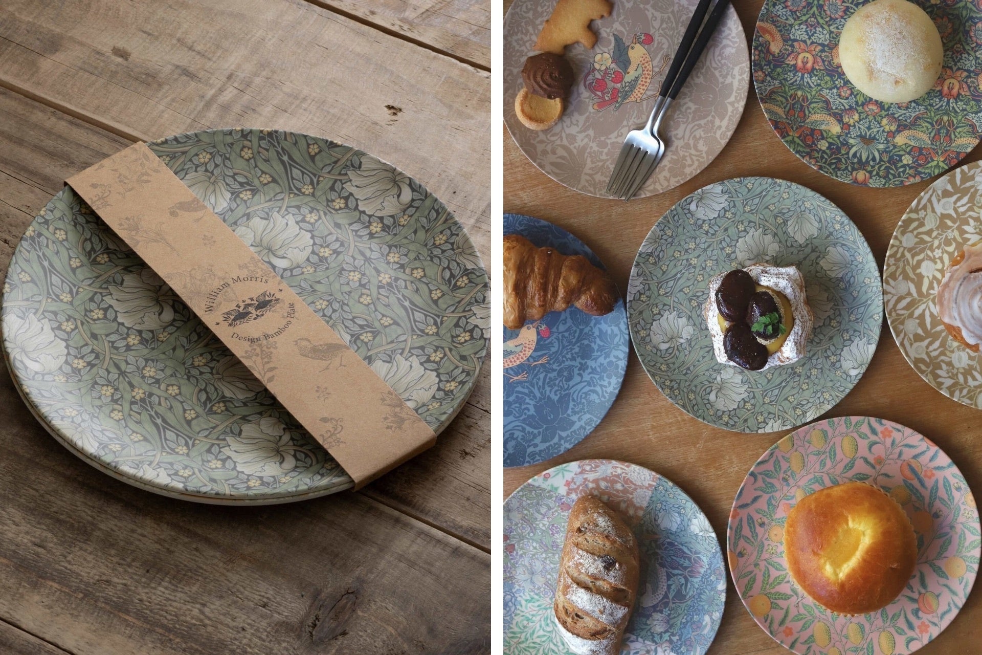 モリスデザインを使用した バンブー素材エコ食器や 折りたたみ傘 など