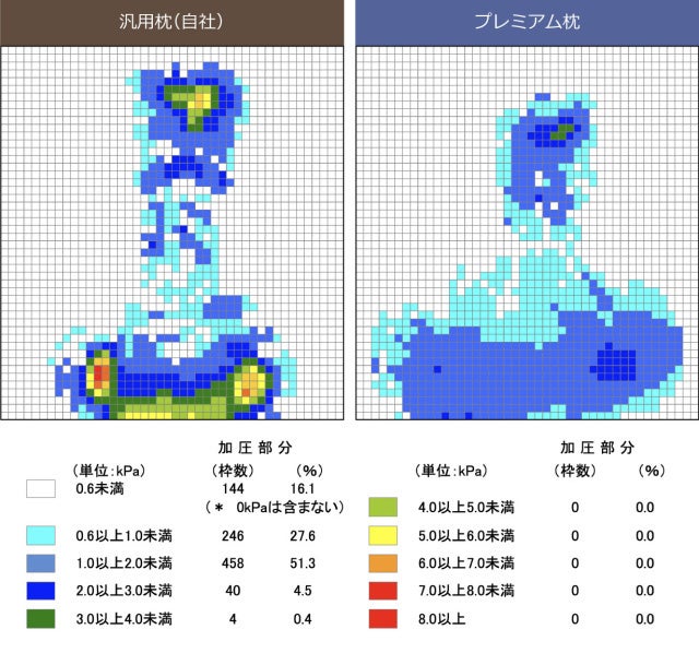 ※超熟プレミアム枕の体圧分散性試験データ