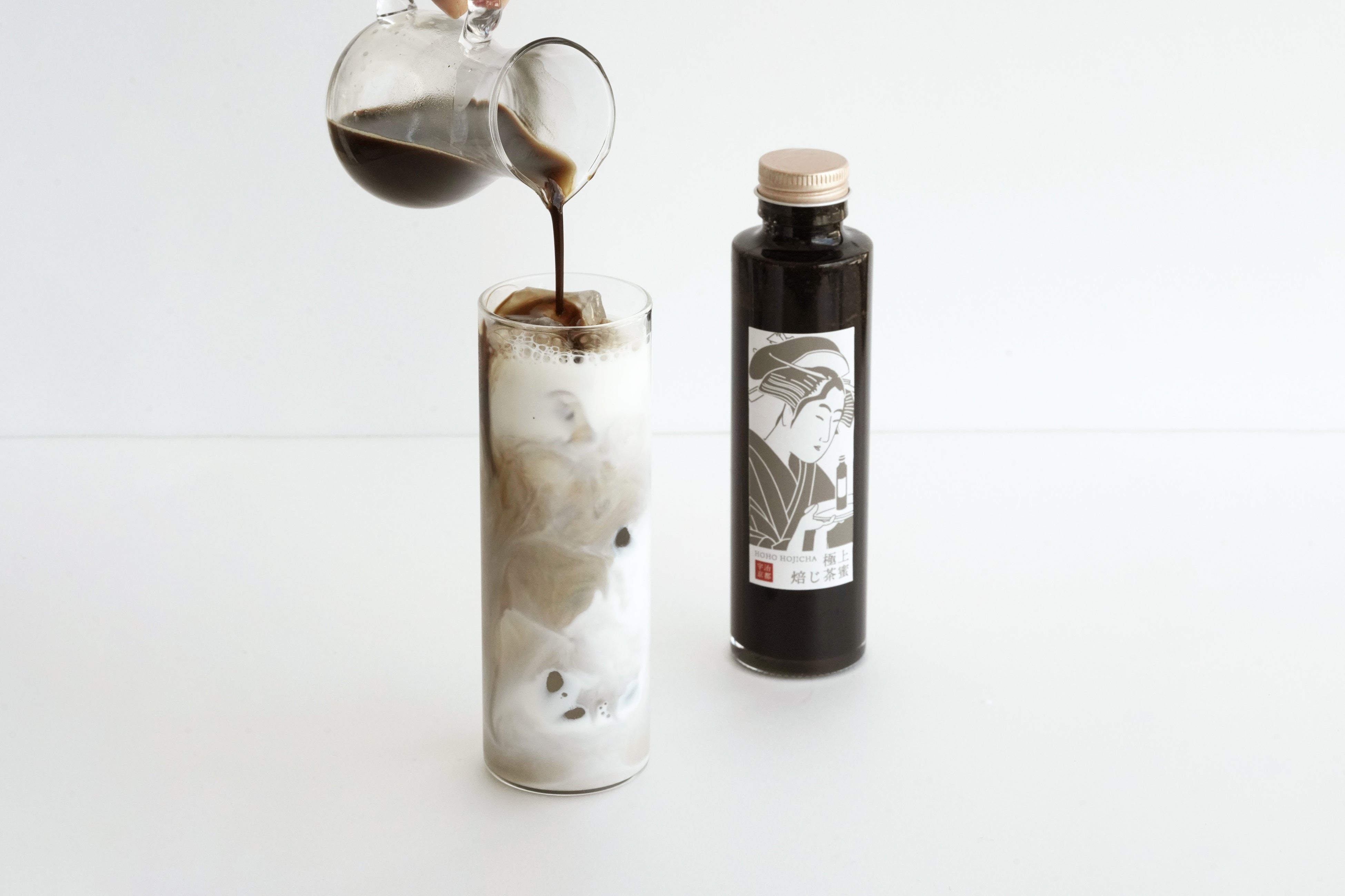 アイスやケーキにかけたり、牛乳に割って焙じ茶ラテにしたりと、 自由な使い方でお楽しみいただけます。人工甘味料・着色料・保存料を不使用で仕上げ、カフェインはほぼゼロ。お子さんや、体をいたわる方など幅広い年代の方に召し上がっていただけます。