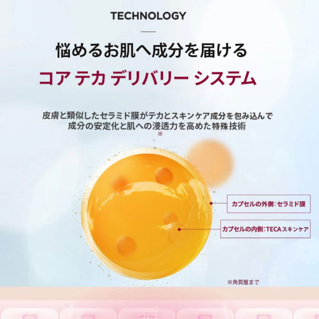 皮膚成分に近いセラミド膜がTECAを包み込んで、安定しお肌へ届けます