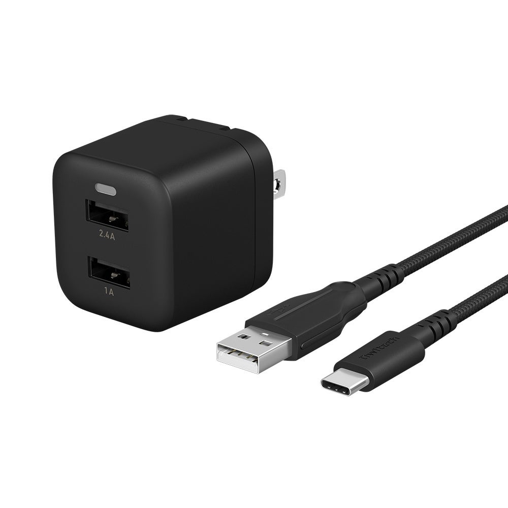 ◆ 最大17W USB Type-A 2ポートAC充電器+USB Type-A to USB Type-Cケーブルセット
