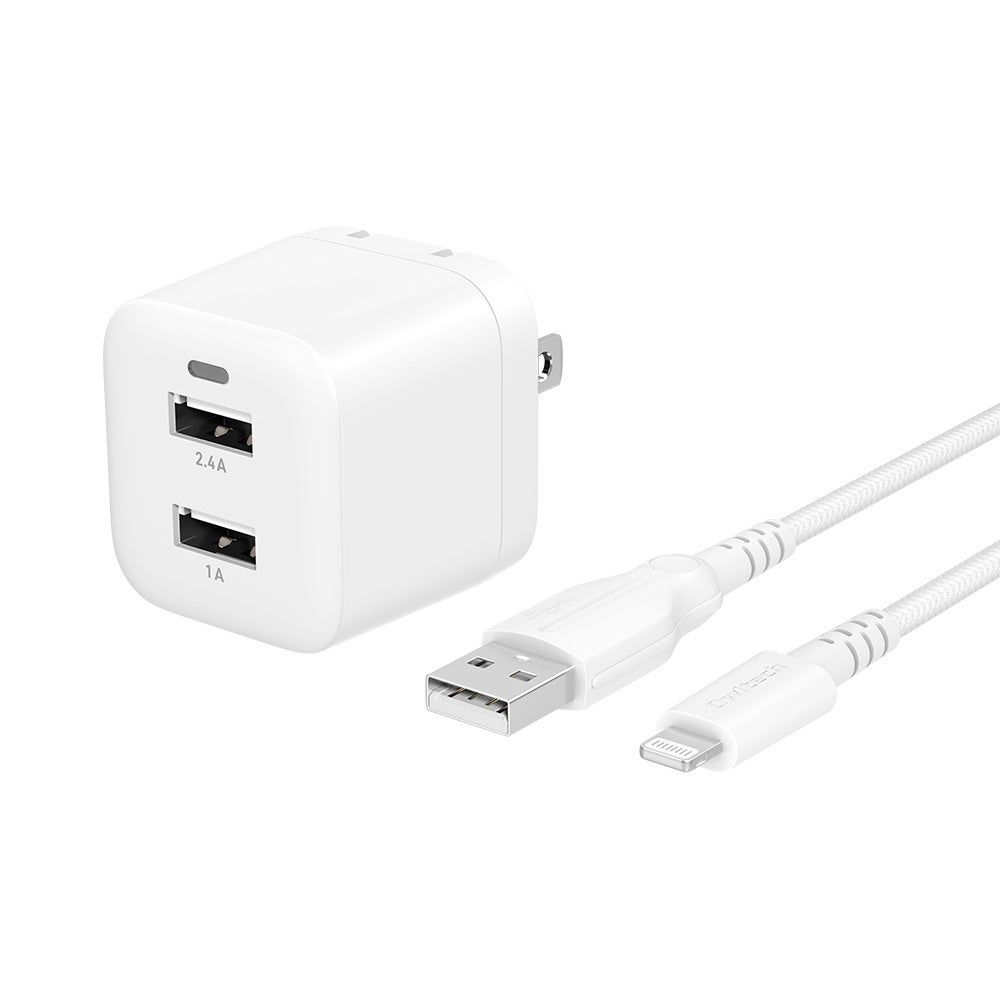 ◆ 最大17W USB Type-A 2ポートAC充電器+USB Type-A to Lightning ケーブルセット