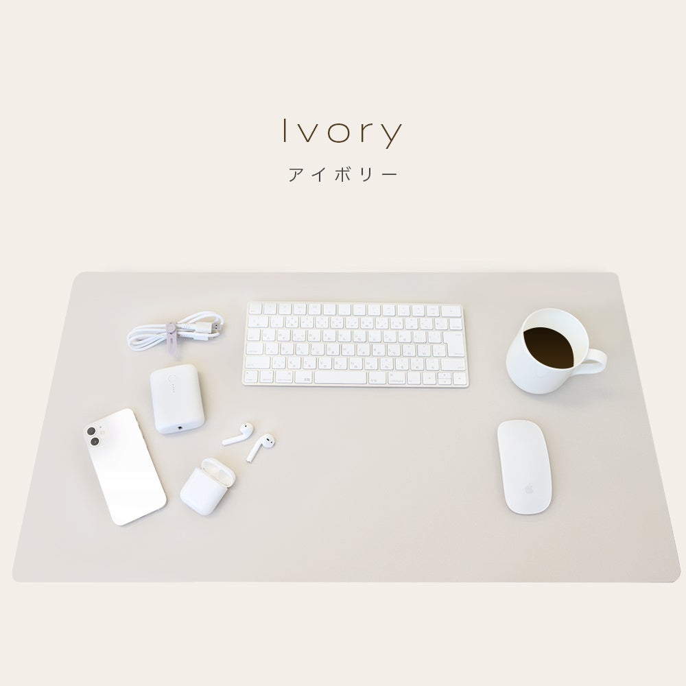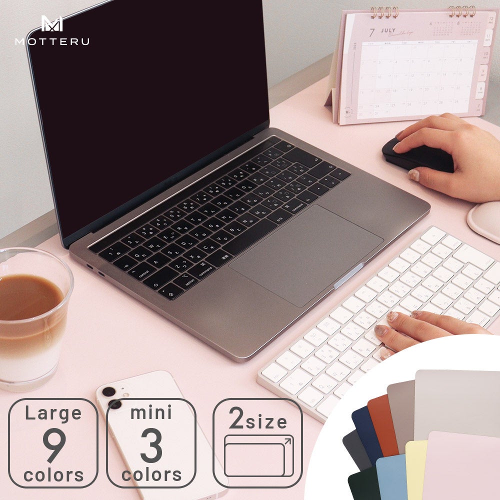 MOTTERUは機能的で自分らしさを表現できるデザインで、パソコン周りのアクセサリーを提案しています。今回、自分だけのワークスペースを実現するMOTTERUオリジナルカラーのデスクマットminiに、既存の2色に加え、新色1色を追加しました。新色はアイボリーです。色合いや手触りにもこだわったデスクマットは、マウスの使用にも対応しています。