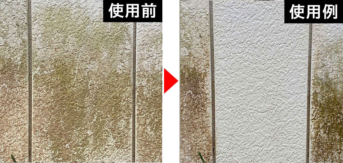 木材にもコンクリート材にも使用でき、一般家庭のカビの多くを除去。外壁のコケ掃除にもお使いいただけます!