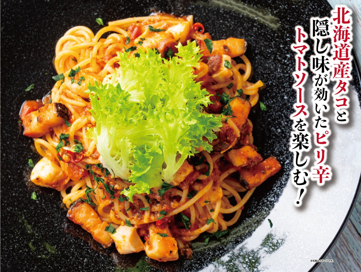 「北海道産タコと「農家のベーコン」のピリ辛トマトソース」