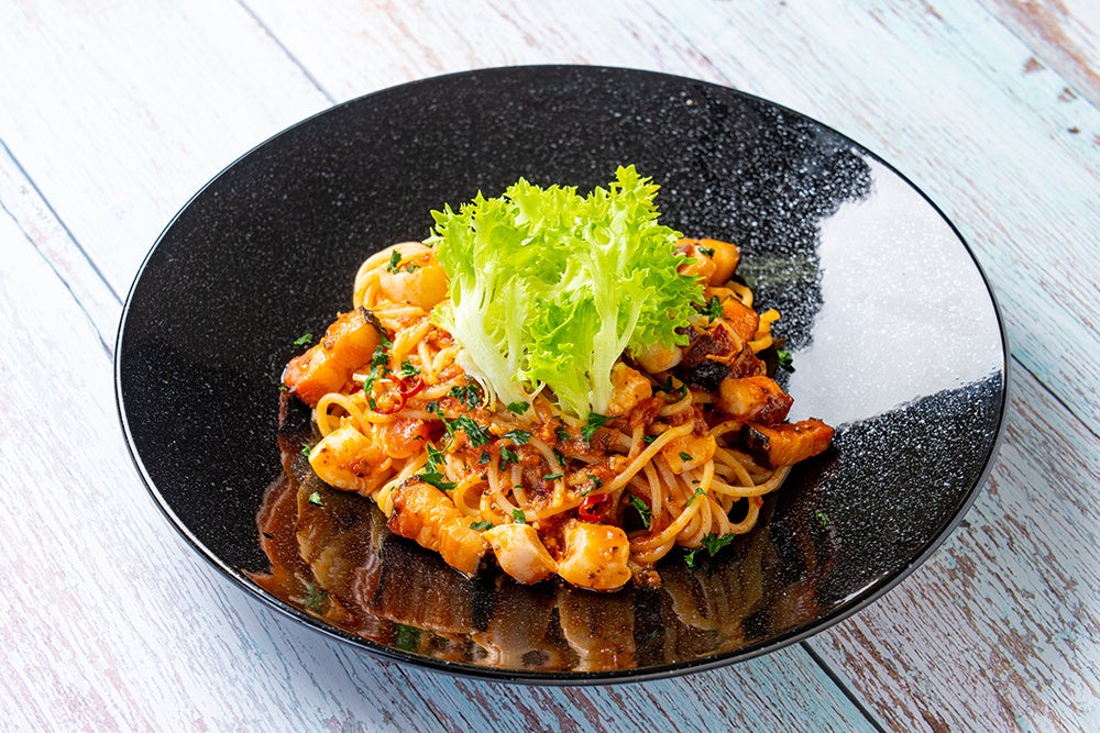 食べた瞬間に「ツルッ」「モチッ」とした食感の生パスタは、下川六〇酵素卵と北海道小麦をブレンドし当店独自のW真空製法で店内で製麺する事で実現しました。北海道小麦の風味豊かさと、下川六〇酵素卵を使う事でコク深い生パスタに仕上がっています。