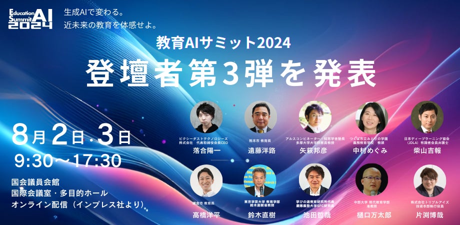 教育×AIをテーマにした「教育AIサミット 2024」登壇者第3弾を発表
