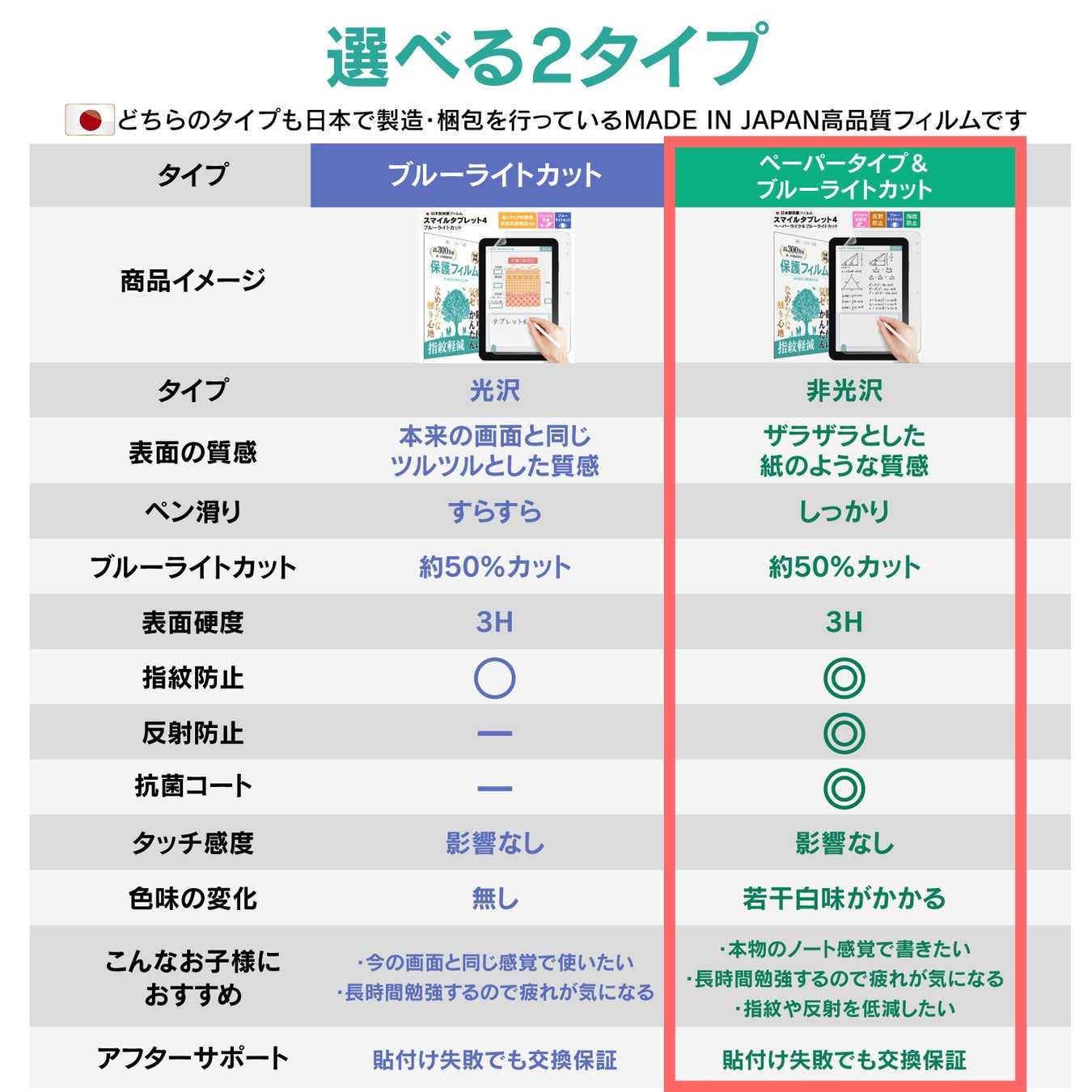 ●ペーパーライクタイプ&ブルーライトカット タイプ 1枚