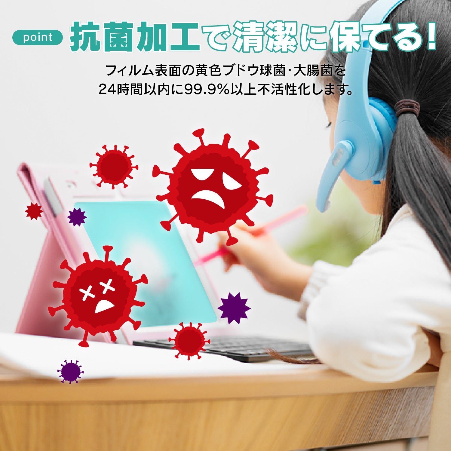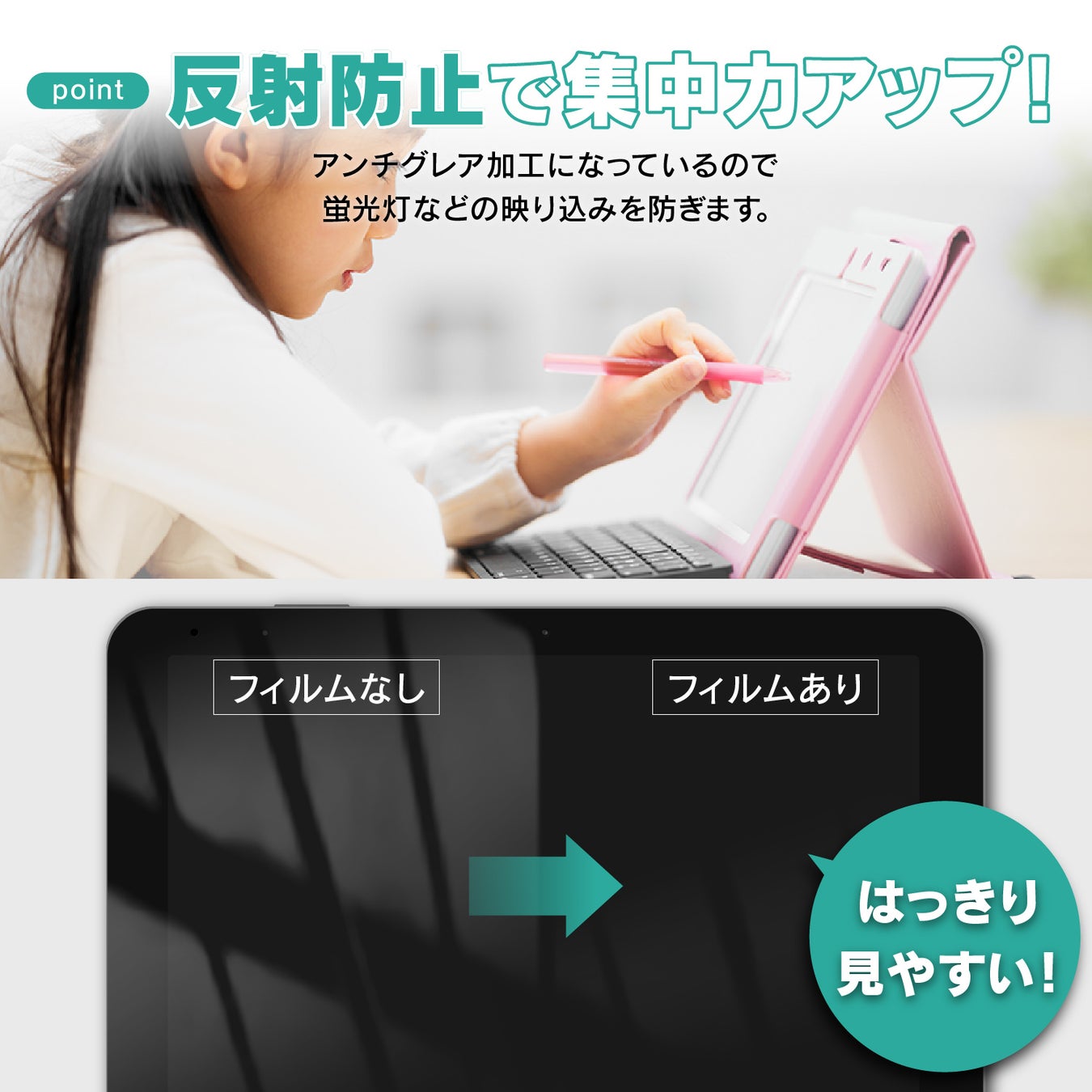 タブレット学習ならではの悩みである光の映り込みが気にならなくなるので、より勉強に集中できます。