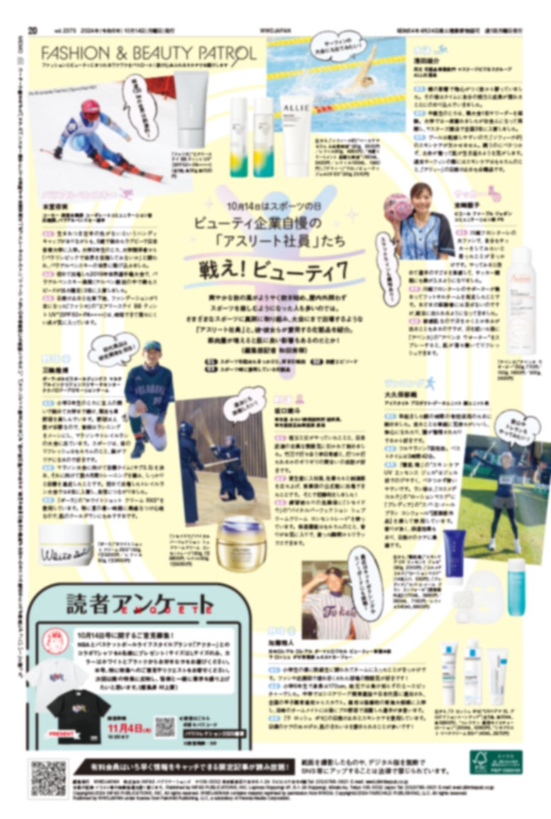 連載では、「ファッション業界のミカタ」はレンタルからリユースへの事業転換が進むゲオホールディングスを分析。「ビューティ インサイト」では、花王とオルビスの新しい挑戦を考えました。「ノット スニーカーライフ」では、本明秀文アトモス創業者がLVMHによる「オフ-ホワイト c/o ヴァージル アブロー(OFF-WHITE c/o VIRGIL ABLOH)」の売却に言及しています。「ファッション&ビューティ パトロール」では、ビューティ企業自慢のアスリート社員を紹介。資生堂の剣道部部長、花王のマスターズ競泳入賞者、コーセーからはパラレルアルペンスキー選手が登場しています。