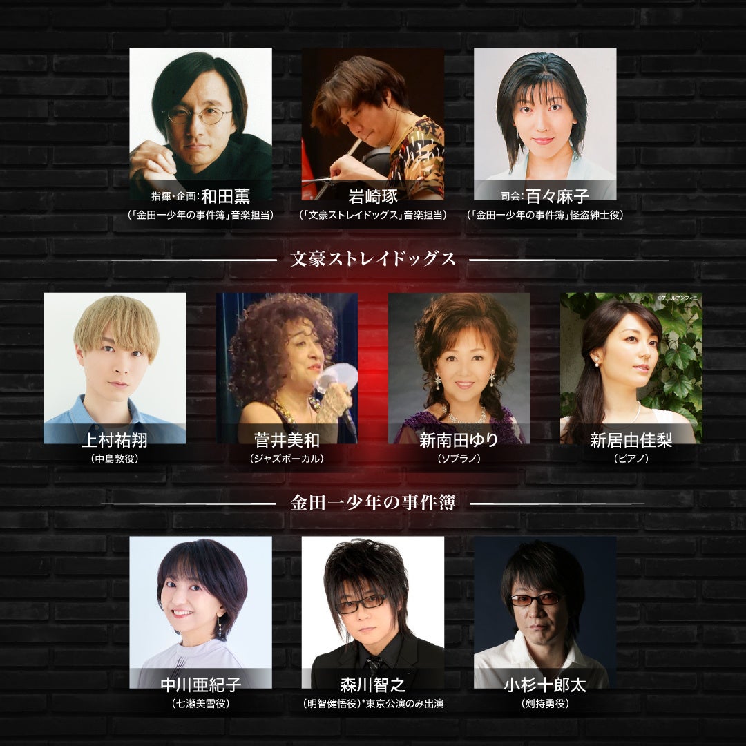 『文豪ストレイドッグス』の音楽を担当する作曲家・岩崎琢と、『金田一少年の事件簿』の音楽を全編にわたり手がけた和田薫、そして豪華声優陣をゲストに迎え、聴きどころ&見どころ満載でお届けするスペシャルコンサート!