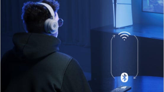 超高速ワイヤレス2.4GHzとBluetooth 5.3が接続可能で、最高クラスのワイヤレス接続を実現します。ボタン一つで2.4GHzからBluetoothに簡単に切り替えが可能で、例えばPlayStationを2.4GHz接続している間に、Bluetooth接続待機中のスマートフォンに着信がある場合は瞬時に接続を切り替えて、電話に出ることが可能です。