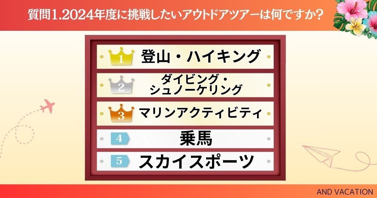 2024年度に体験してみたいアウトドアツアーは"登山・ハイキング"がトップ!
