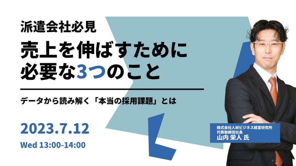 【7月12日(水)開催】派遣会社に特化したコンサルタントが教える、売上を伸ばすために必要な「3つのこと」