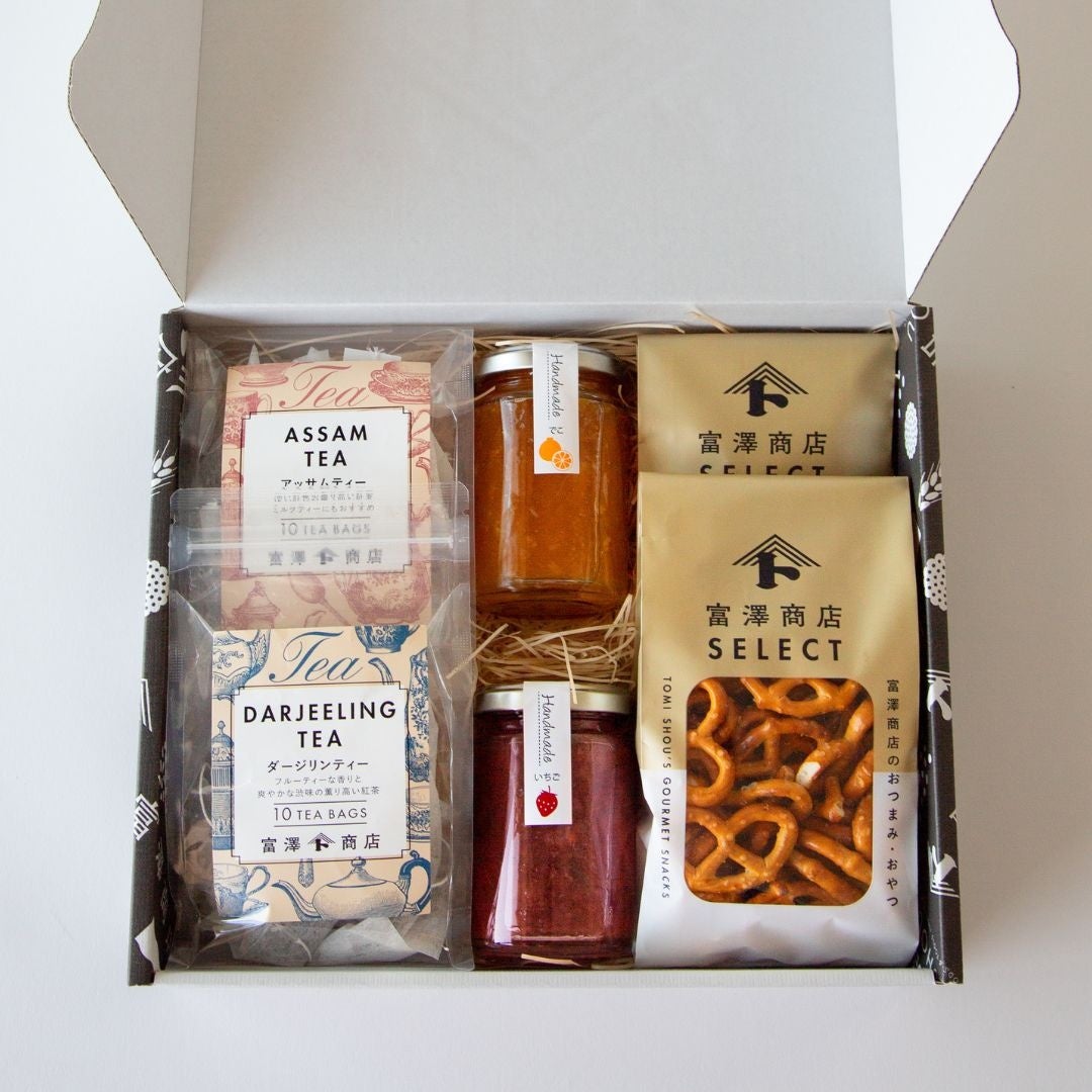 紅茶と甘いお菓子、フルーティーなジャムを詰め合わせた、富澤商店ならではのアフタヌーンティーセット。自分へのご褒美にはもちろん、ちょっとしたギフトにもおすすめです。