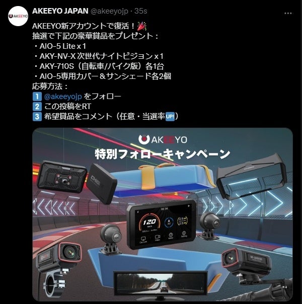 【抽選会の開催!】AKEEYO公式Xアカウント変更のお知らせと特別キャンペーンのご案内。記念すべき大抽選祭りで夢のlike新商品をゲットしよう!(全て送料無料)