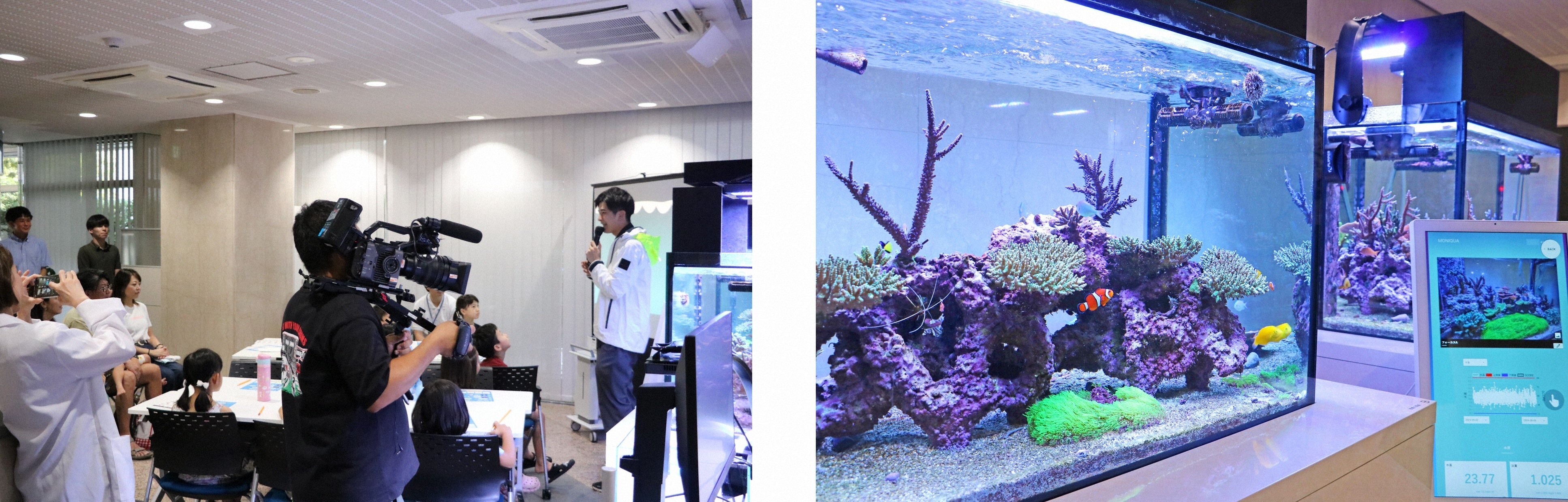 IoTセンサーによる光量・水流・水質・温度管理を通じて自然環境を再現し、2025年には国内のオフィス環境で初めてウスエダミドリイシ(サンゴの1種)の複数コロニー同時産卵に成功しました。(イノカ社調べ)