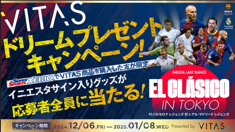 なんとこの度、イニエスタ選手のサイン入りグッズが当たるキャンペーンを実施!期間中に大型スポーツ専門店のゼビオ店舗で VITAS 商品を購入した方の中から、応募者全員にもれなくプレゼントが当たっちゃいます!
