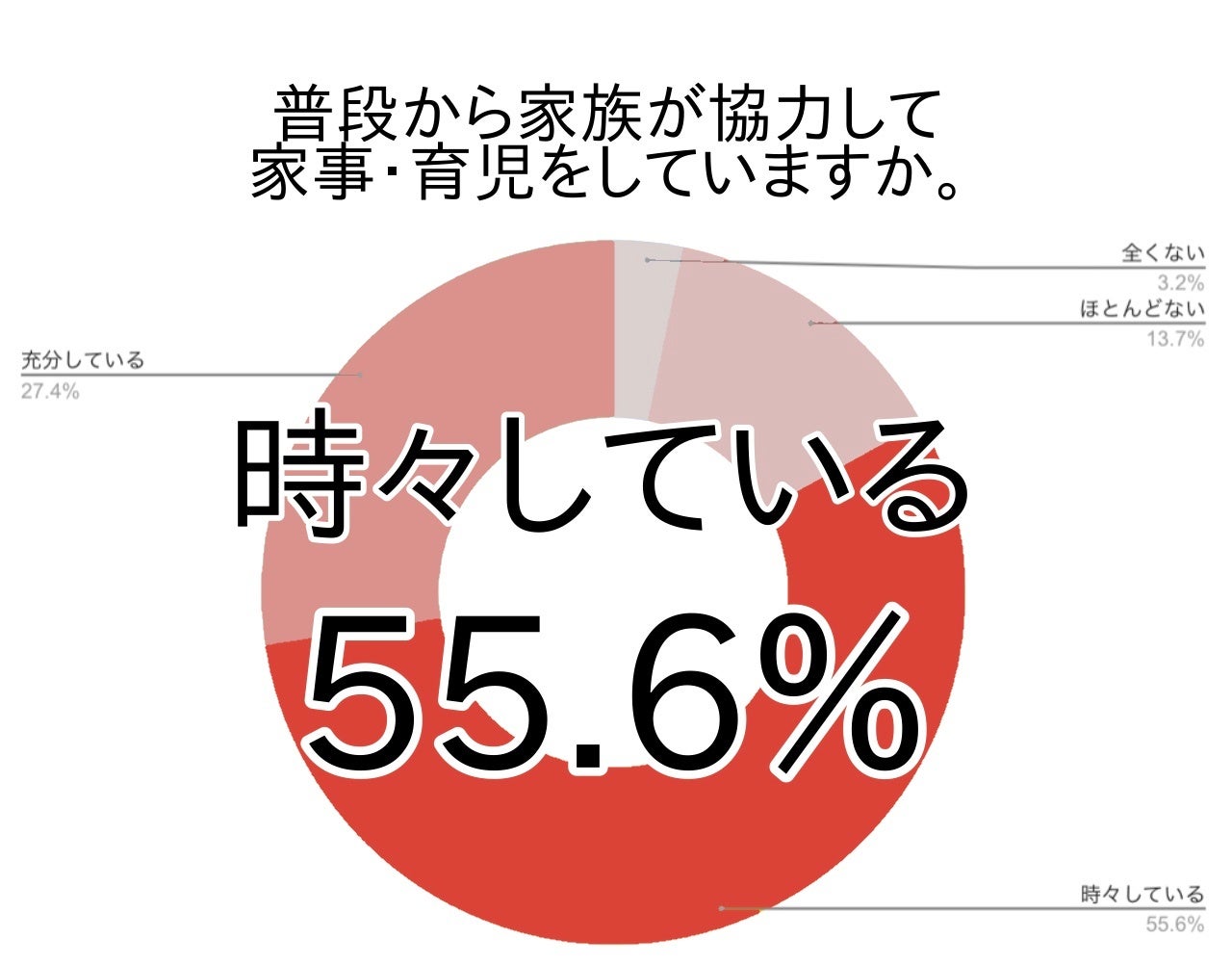 アンケートでは次に、普段から家族が協力して家事・育児をしているかについて尋ねてみました。