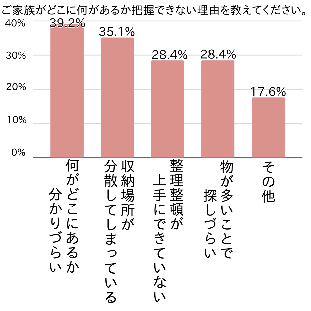 アンケートでは次に、家族が必要なものの収納先を把握していない理由について具体的に尋ねました。