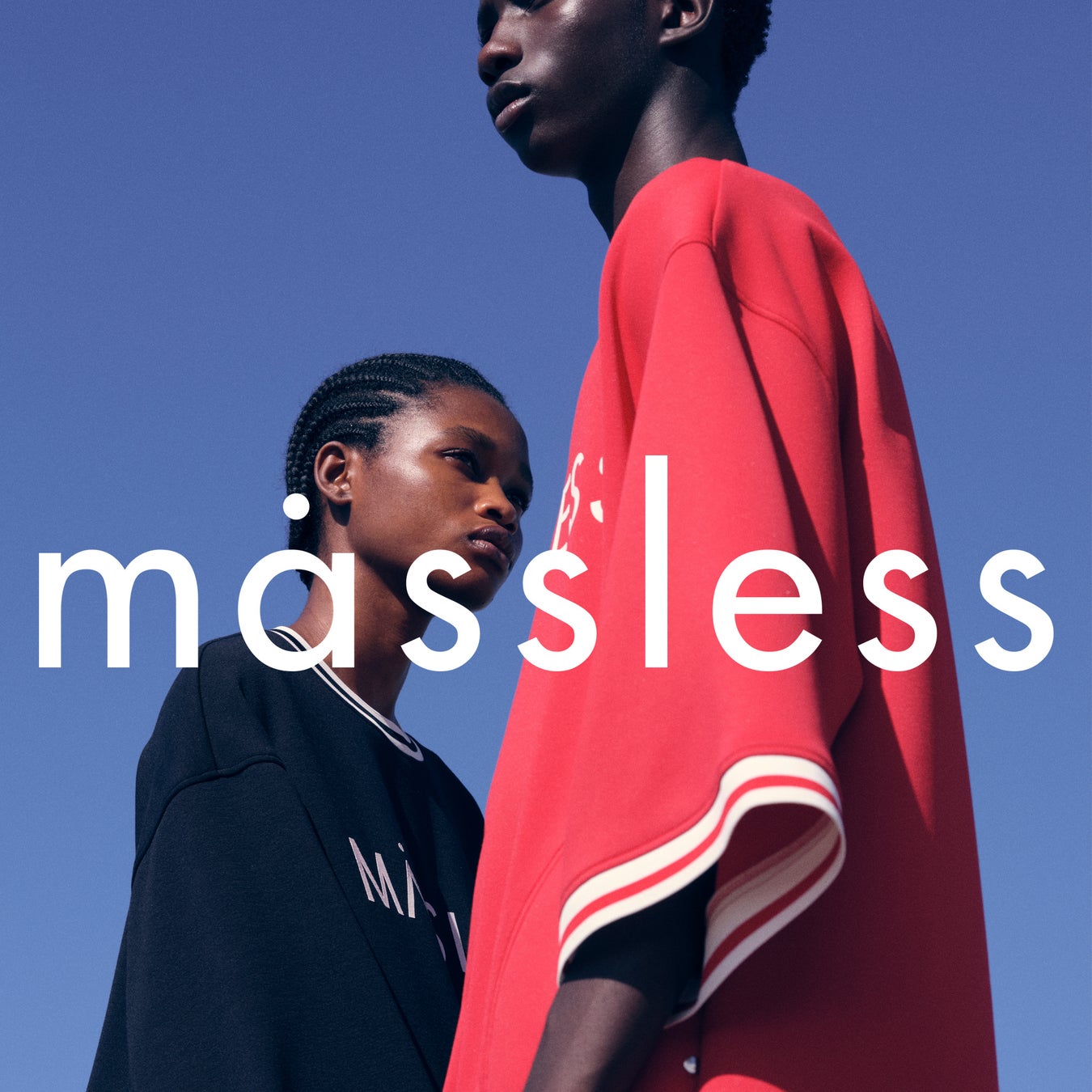 【massless(マスレス)】は、サスティナブルな社会の実現に向け、次世代につなぐ強いフィロソフィーを持ち、モード・サスティナブル・スポーツを融合させた従来の概念・枠組みにない新しいテイストで、多様な価値観とライフスタイルを尊重し、アイテムや年齢、性別を超越した自由なスタイルを発信します。