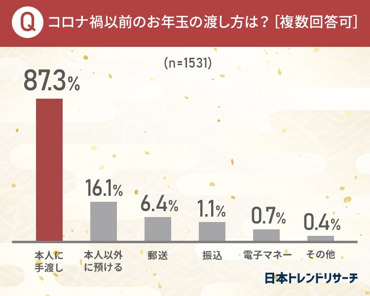 コロナ禍以前と2022年で、お年玉の渡し方には変化はあるのでしょうか。