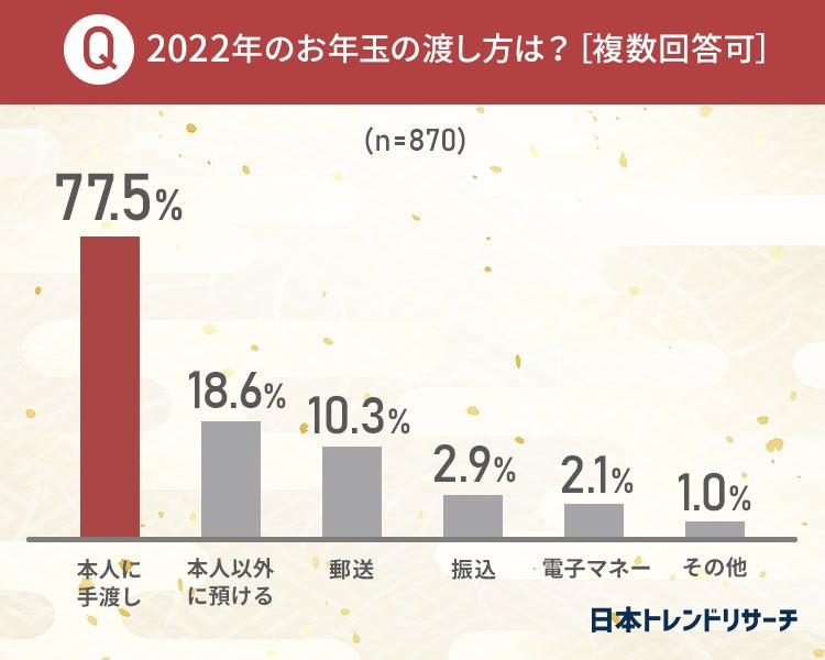 【2022年のお年玉】お年玉を渡した方の7割以上が「本人に手渡し」