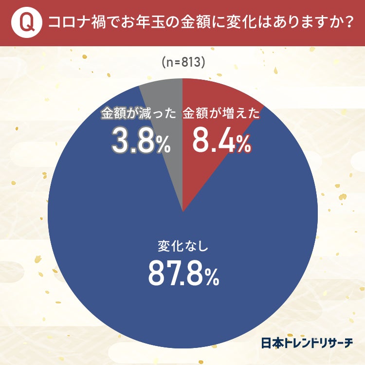 コロナ禍前と2022年にお年玉を「あげる予定(あげた)」と回答した813名に「コロナ禍でお年玉の金額に変化があったか」聞きました。