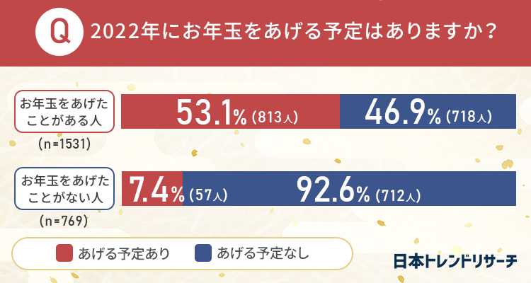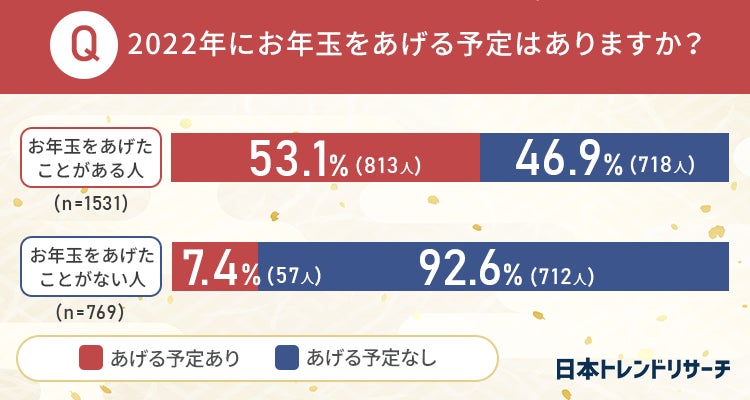 初めに、これまでにお年玉をあげたことがあるかどうかを聞きました。